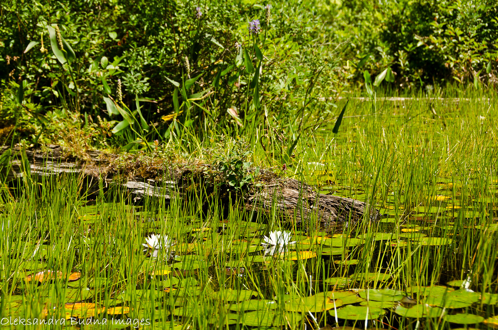 There is a stream connecting Loucks and Cox Lakes with portages at both ends. The portages are short (about 150 metres each) and easy, and the stream itself, blanketed in water lilies, is incredibly picturesque. It did get a bit too shallow in some places and there was a pretty big beaver damn, so we had to get out and drag the canoe over it.