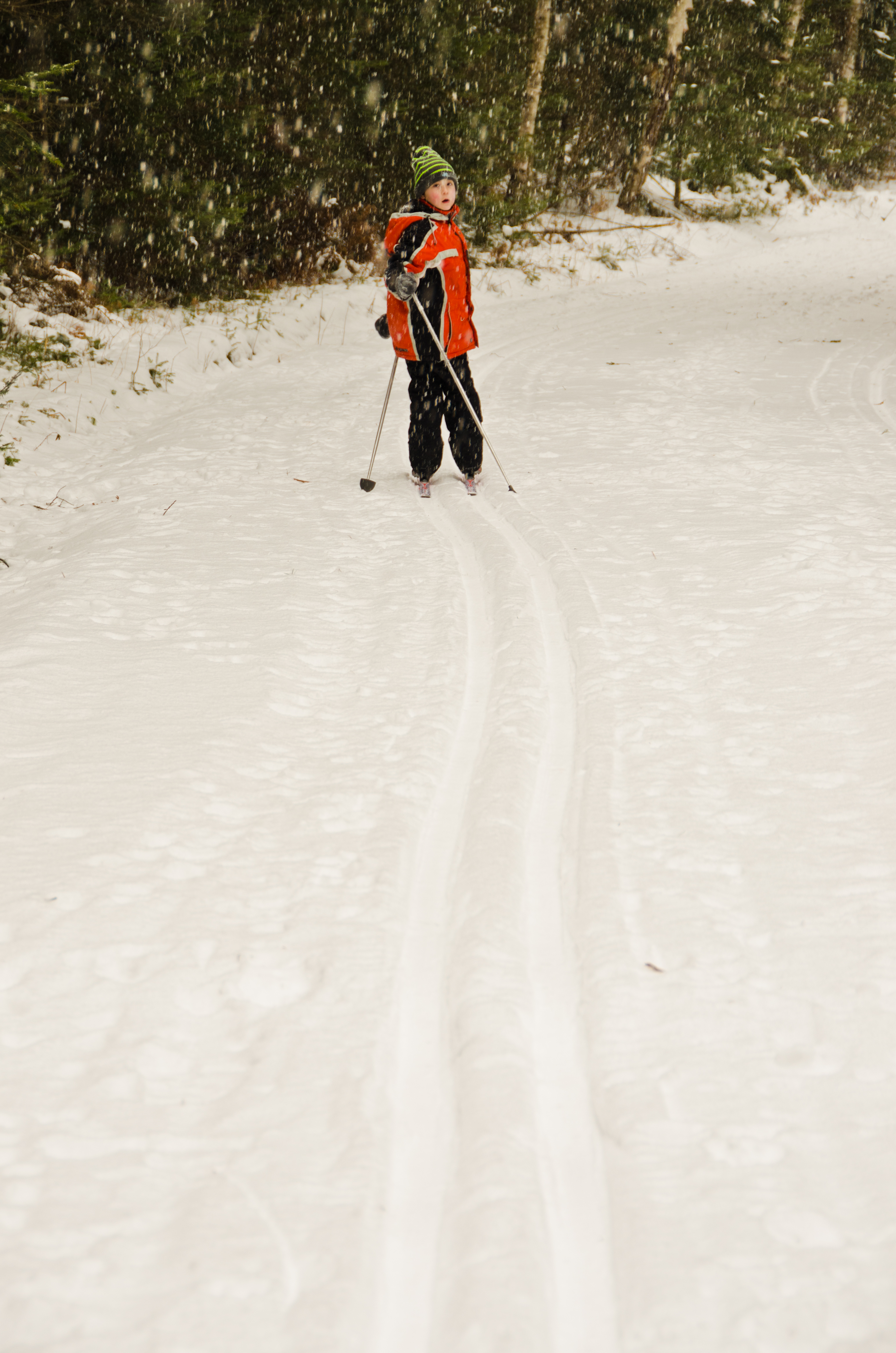 Our bodies need more calories in the winter so we always bring lots of snacks and drinks with us on a trail. Good snacks have low water content and high fat content to prevent them from freezing so think nuts, dried fruit, granola bars, trail mixes, crackers, cheese, cookies and chocolate. Hot chocolate or tea on the trail taste divine so we do bring a thermos with us even though it is heavy. The parks also have warming huts along the trails, a great place to rest and fuel up.