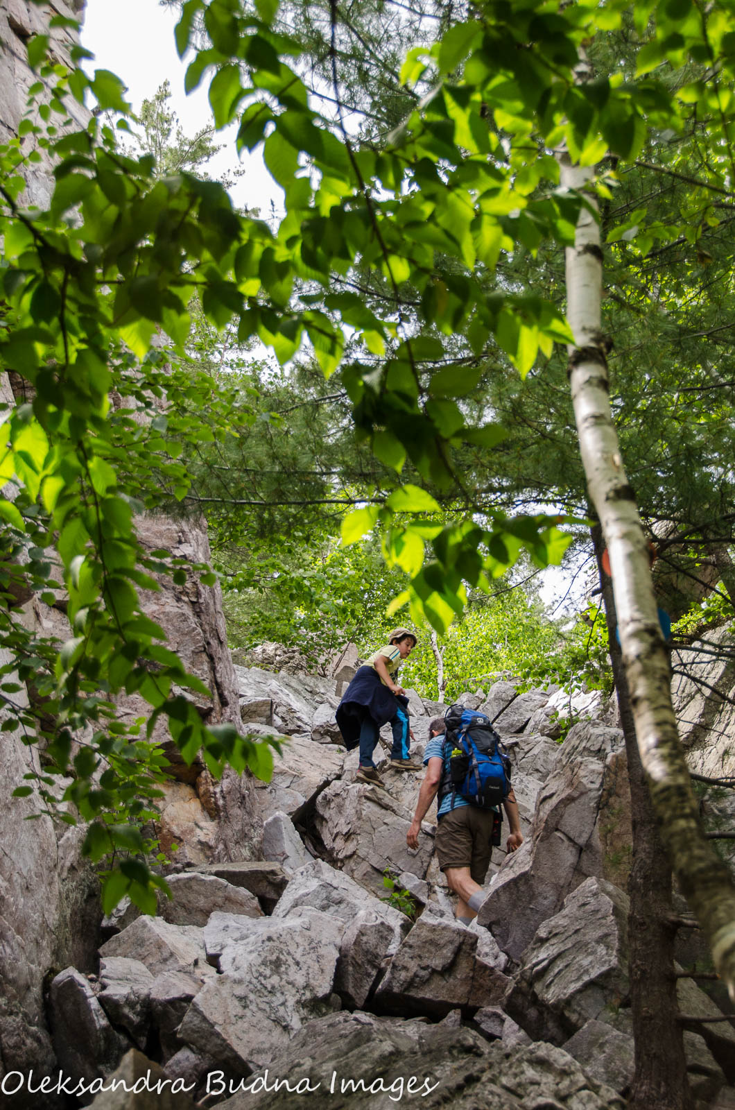 The Crack is one of the most famous spots in the park that offers incredible views but it makes you work for them. The trail to the Crack starts off Highway 637, not far from the park entrance. The trail can also be accessed through a portage from Killarney to Kakakise Lake and that was what we planned to do. It meant we had to cross our ‘favourite’ portage from O.S.A. to Killarney again but with only a canoe and one backpack with snacks and water, it was much quicker and easier to do. Plus, we had a great welcoming party this time.