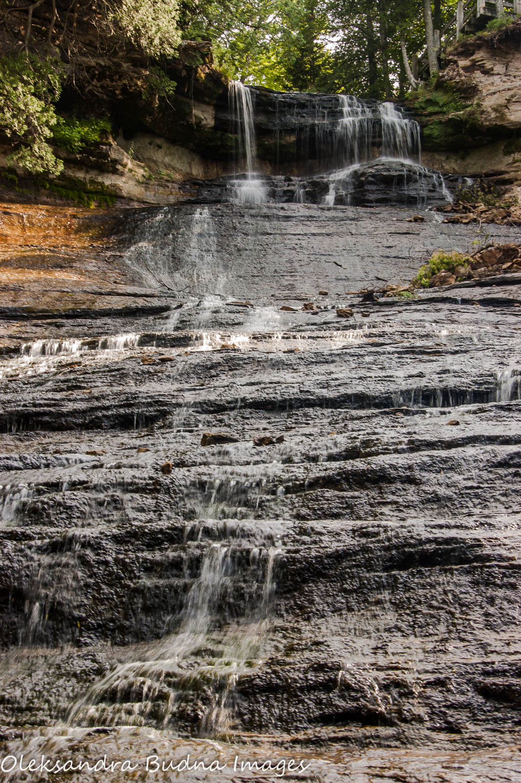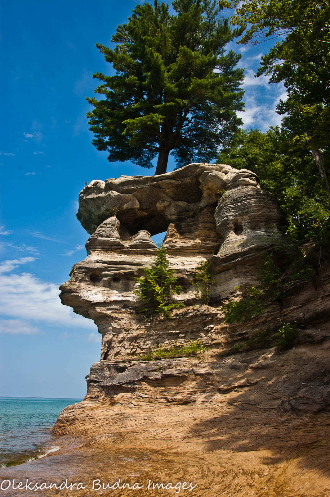 This landmark requires a bit of a hike (2.5 miles or 4 km one way to be exact) but it is worth it: another beautiful beach, Chapel Falls and, of course, a whimsical sandstone formation known as Chapel Rock. Chapel Rock is more intricate than Miners Castle with arches, terraces and curves. It was once connected to the mainland but the arch has since fallen through. Now all that’s left are the roots of the lone pine tree growing on the Chapel Rock. Stronger than the sandstone, the roots are holding tight. The beach is beautiful but can get a bit busy as people come here by boats. The waterfall at the beach creates a natural slide so kids had a blast playing around it.