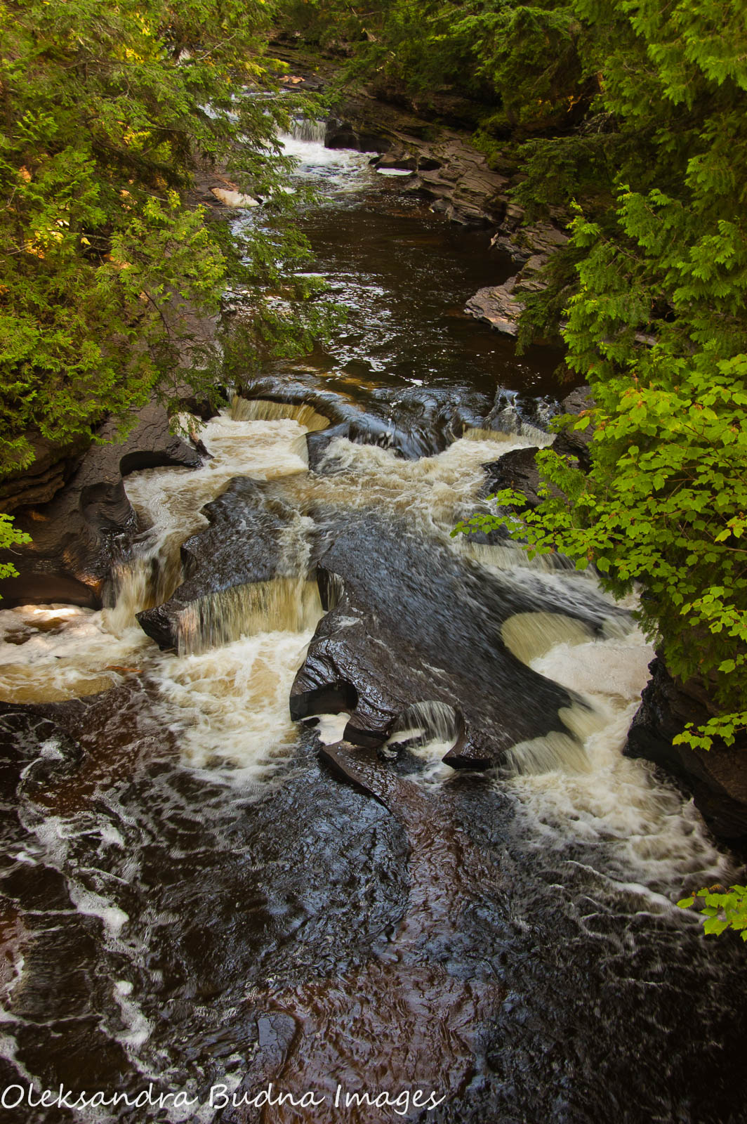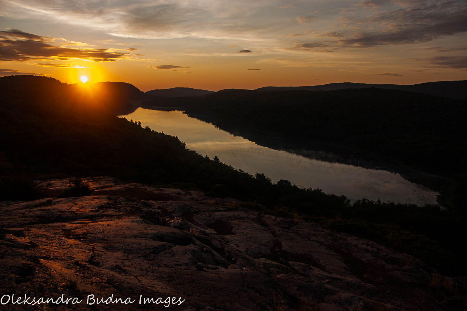 In my previous post, I wrote about the first part of our Lake Superior Circle Tour, which included a train ride through Agawa Canyon and exploring Pictured Rocks National Lakeshore. After we left the Bay Furnace campground near Pictured Rocks, we made a few stops at various waterfalls and arrived at Porcupine Mountains shortly after sunset. The Lake was unusually quiet and perfectly smooth, and the transition between water and sky was seamless, almost invisible.