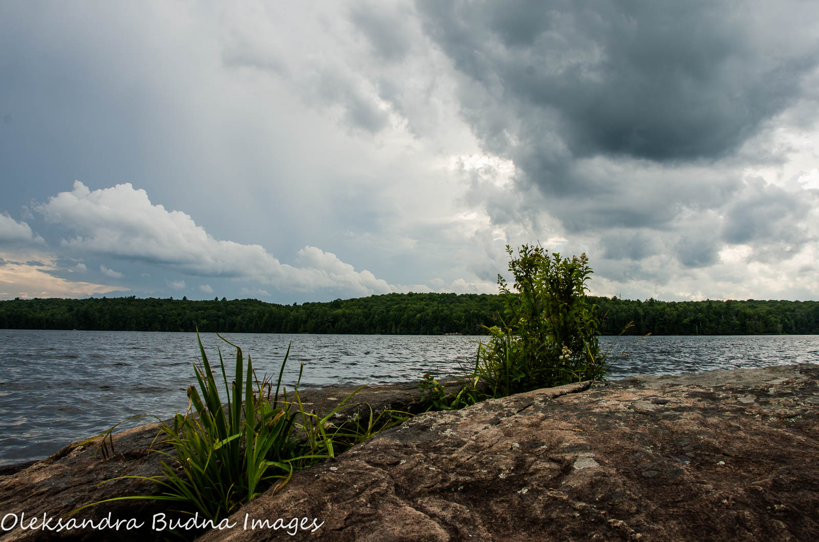 We arrived late on Friday night. Carrying all our stuff from the car to the site and setting up in the dark wasn’t too much fun but we managed to do it fairly quickly and were soon snuggled up in our tents listening to the calls of the loons. The next morning, I woke up early to take pictures of the sunrise as I always do on my birthday. Unfortunately, the sky was overcast and no sun was anywhere to be seen. I still got out of the tent and headed to the lake. After all, this tradition is about more than just a pretty picture. It’s about finding time to think about the year that has passed and make wishes/plans for the next one. And there is no better time for it than the dawn when everyone is still asleep and the world belongs to me alone.