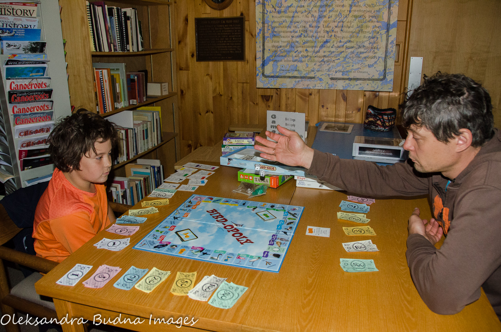 Dawson Trail Campground is located in the north-eastern corner of the park on the shores of French Lake. Like most campgrounds in Ontario Parks, Dawson Trail offers electrical and non-electrical campsites, roofed accommodations, and comfort stations with flush toilets, showers and laundry facilities. There are many hiking trails in the park, a few sandy beaches, canoe launch, a small visitor centre, and our personal favourite – John B. Ridley Research Library. As the two days we intended to stay at the campground turned into three because of endless rains, strong winds, and most importantly, high waves, we spent a couple of mornings at the library playing board games, like Birdopoly (a version of Monopoly but with birds) and Boundary Waters Canoe Trip (because if you can’t go canoeing, you can at least pretend you are).