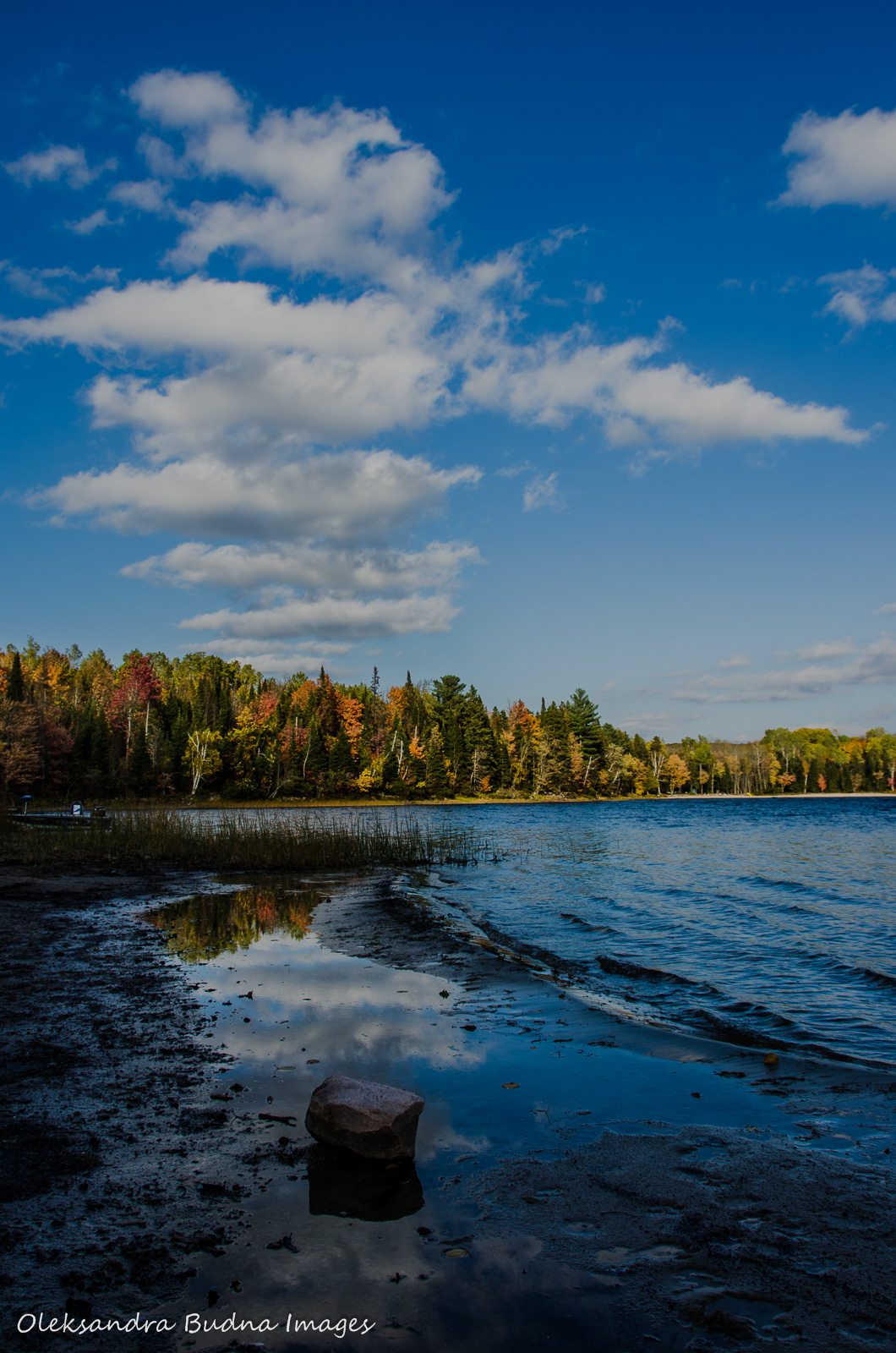 This year, we chose Restoule Provincial Park as a site for our October reflections. Located just south of North Bay, this northern park suits perfectly the definition of a `hidden gem.` It is often overlooked by campers even though the park offers a wide range of outdoor activities and boasts some amazing movie-worthy scenery (Restoule was, in fact, one of the filming locations for Backcountry, a Canadian thriller about a fatal bear encounter). Smaller crowds and the park’s location away from major highways have their benefits: the only sounds we heard during our stay were the calls of birds and the rustling of leaves.