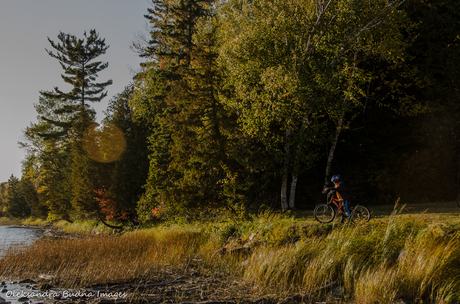 Once we were done with the bike trails, we just rode around the Putts Point and Bells Point Campgrounds, enjoying an unusually warm October day, the glowing forest and the crunching of leaves under our tires.