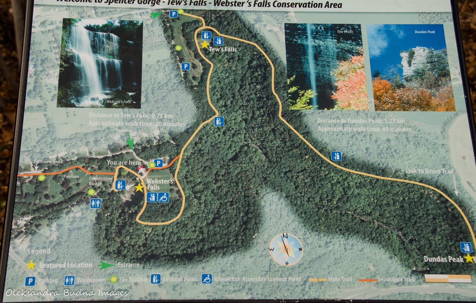 Our destination was Spencer Gorge/Webster’s Falls Conservation Area near the Town of Dundas. Two beautiful waterfalls are located in this natural area: Webster’s and Tew’s Falls along Spencer Adventure Trail, which is part of the Bruce Trail System.