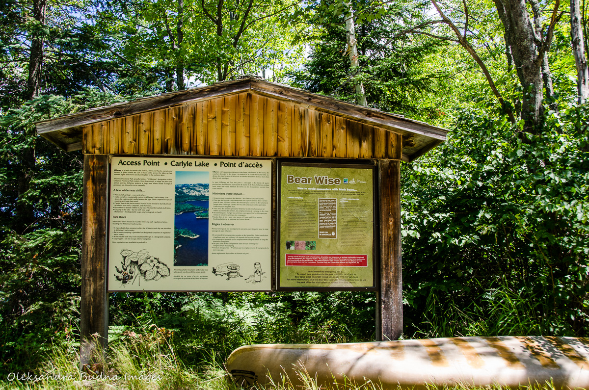 One thing that gave me pause when I was planning this trip was a drive to Killarney. Over four hours in the car all by myself didn’t sound very exciting. But with the help of CBC’s Ideas podcasts it wasn’t too bad. I arrived in the park close to 12. My first stop was Killarney Kanoes to pick up my backcountry permit (my canoe had already been delivered to the access point earlier that morning). Around one, I was at Carlyle access point.