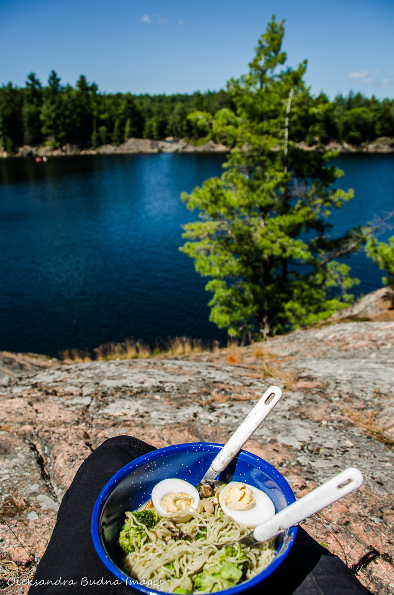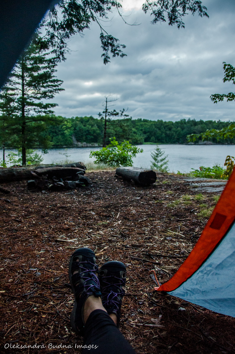 My neighbourbours across the lake were packing. It made me sad. Having women across the lake provided some security. Three guys arrived shortly after the women left and blasted music across the lake before they even unloaded the canoe. I find any sounds that haven’t originated in nature really annoying during camping (small doses of guitar and singing are okay as they are produced right on the spot and not exported from civilization and then amplified for everyone to hear). It was even more annoying on this trip when I was looking for some alone time. That moment also made me realize my vulnerable position – as a woman by myself I didn’t want to approach three dudes and ask them to keep it down. Luckily, they turned it off pretty quickly and I didn’t hear them again for the rest of the trip.