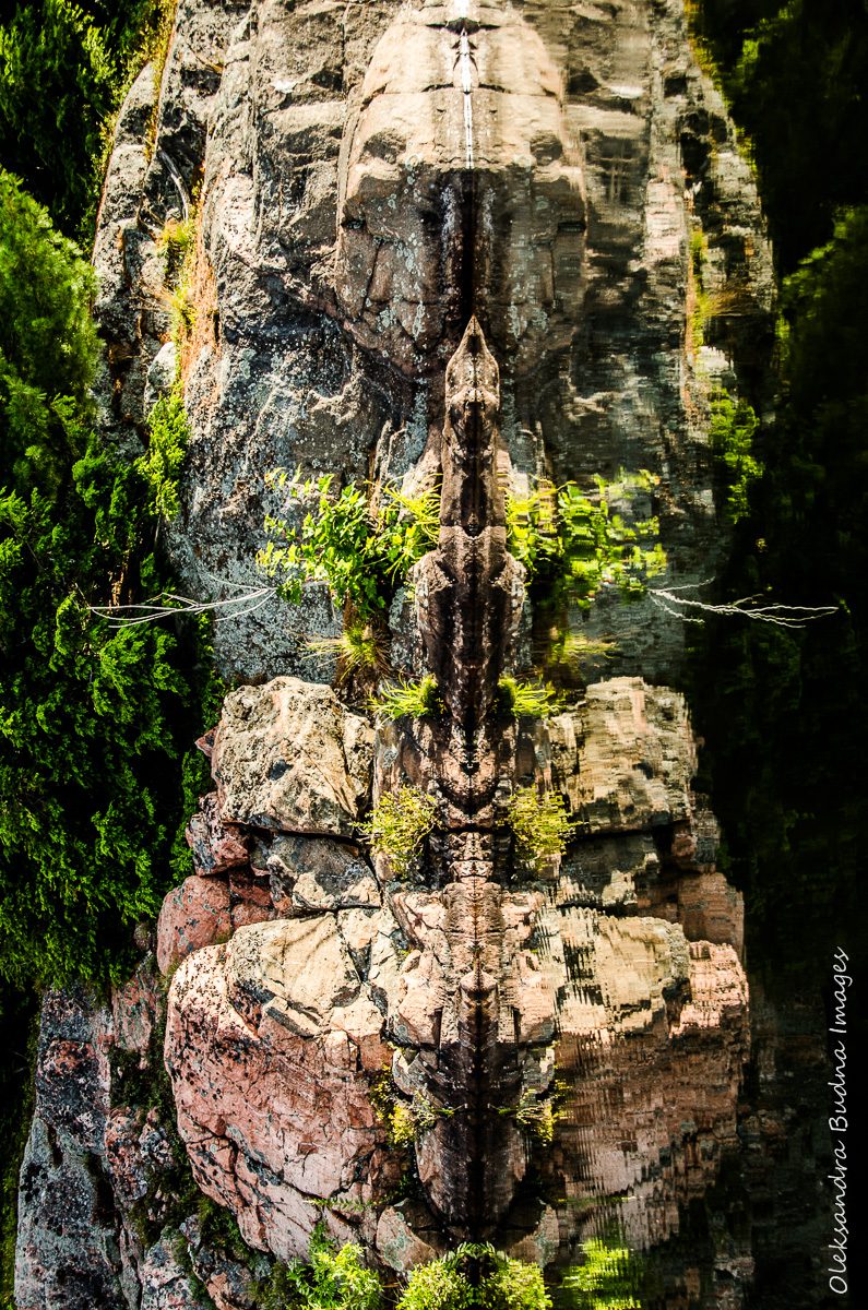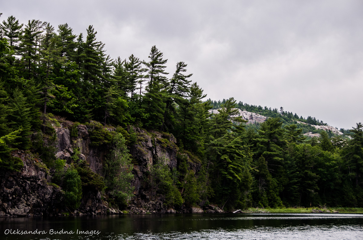 It started raining when I was half way through Kakakise, large drops breaking up the quiet smoothness of the lake. I didn’t hurry back mesmerized by towering cliffs on both sides, swirly patterns on the rocks and twisted pines clinging to the vertical hard surface.
