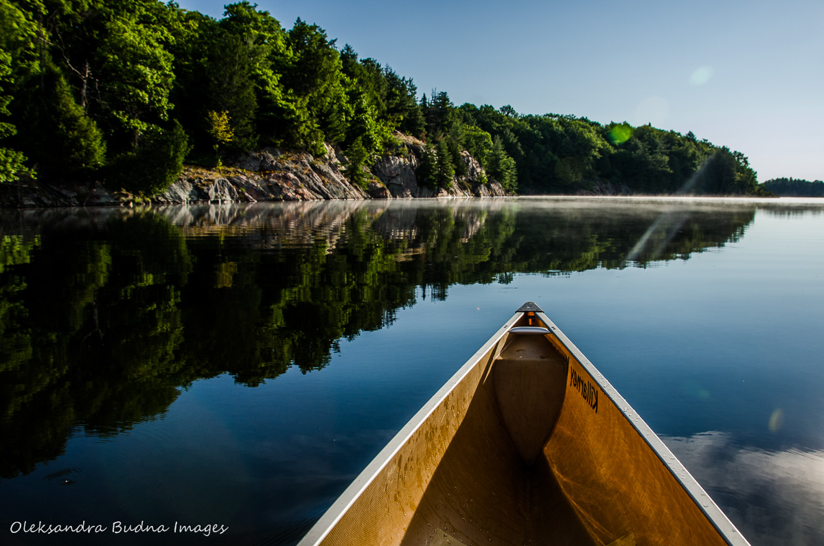 Eventually, I paddled into Carlyle. This time the lake didn’t fight me. On the contrary, it felt as if I was gliding on top a perfectly smooth, polished glass, the world split in half, identical both above and beyond.