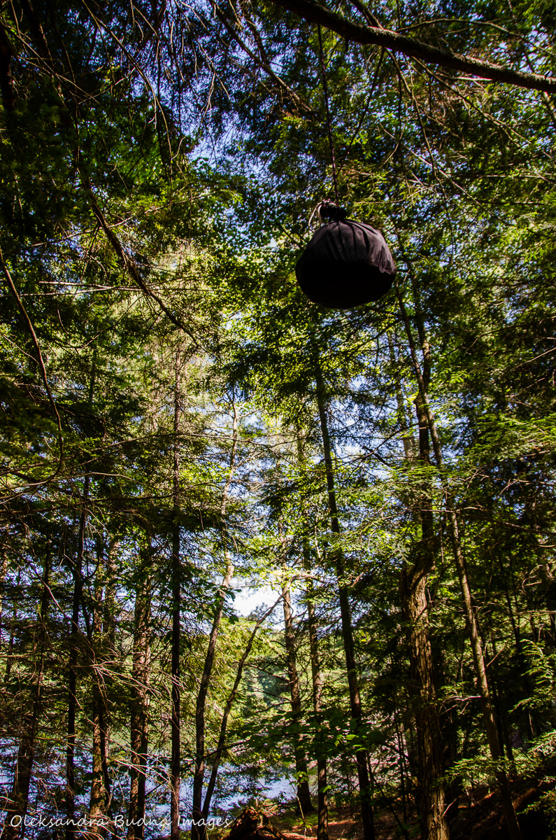 I didn’t feel scared by then, blueberries and all, but it did feel weird to be on my own. So I kept myself busy with camping chores, which needed to be done anyway. I set up my (or technically my older son’s) tent. I found a branch for a bear hang and it took me only three attempts to get the rope up. I collected firewood.