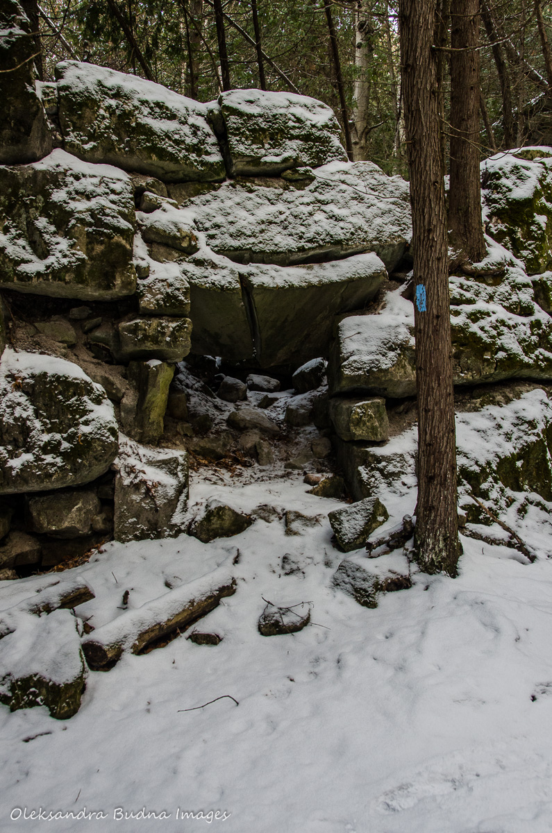 Devil’s Pulpit is a cliff along the Bruce Trail in Caledon. The name is well deserved, I must admit, as the climb from the valley floor to the top with an added challenge of fresh snow cover was a bit hellish but the views of the Credit Valley were magnificent.