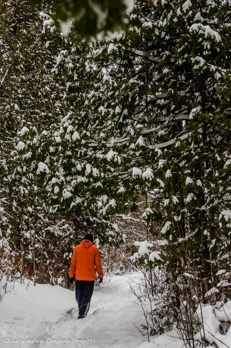 By then a mix of rain and snow started coming down so it was time to head back. While we had less than a kilometre to cover, with our son hobbling along and making stops for snow showers it took us a bit of time.