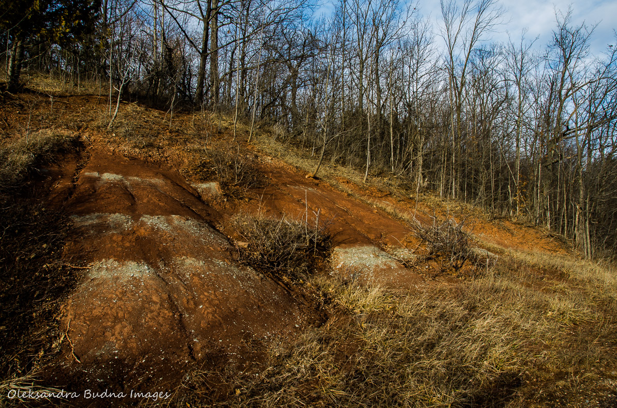 Terra Cotta gets its name from the brick-red shale covering much of its soil at the base of the Escarpment and on riverbeds. Because there was so little snow, we found some patches last year, which reminded of the Cheltenham Badlands, but smaller.