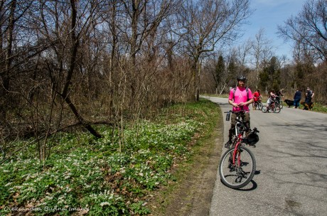 Point Pelee has a bike trail running through the park all the way down to the point. Our bikes were happy to finally get a workout after the winter hibernation. The trail was lined with blue and white spring flowers that attracted a different kind of winged signs of spring, and as we got more south, patches of prickly pear cactus.