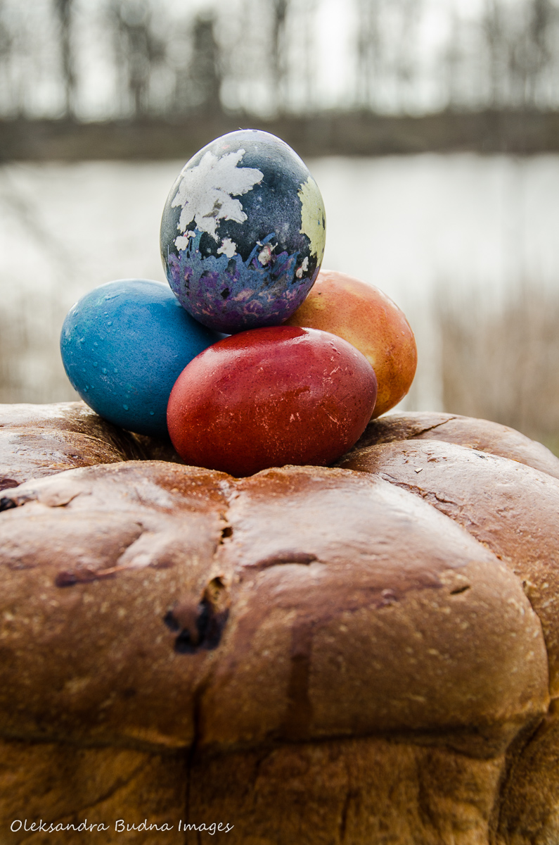 Luckily, the rain never materialized and by the time I got out of the tent the second time the sun was trying to break through. We had our Easter breakfast of colourful eggs (all dyed naturally with onion shells, red cabbage and turmeric) and yummy Easter bread, plus some non-festive foods like veggies, hummus and cheese.