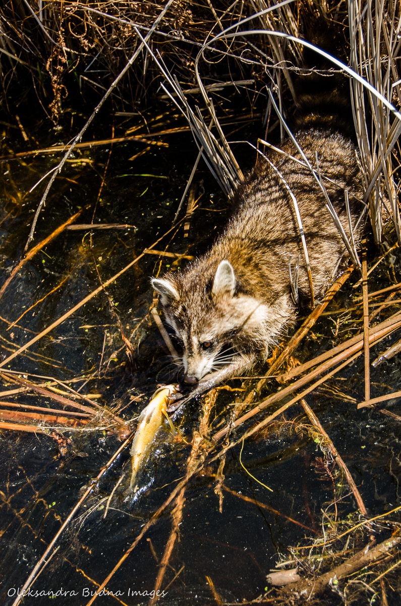 In addition to reptiles, we came across a mammal: a raccoon fishing for lunch.