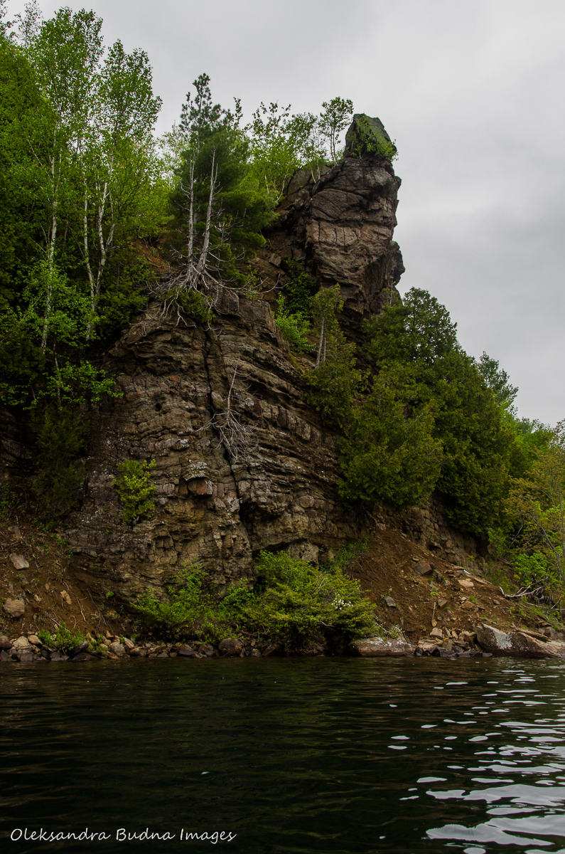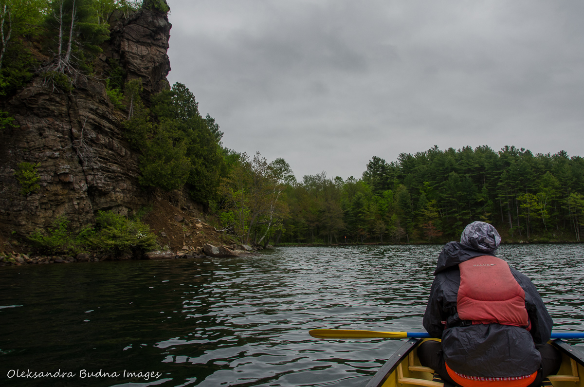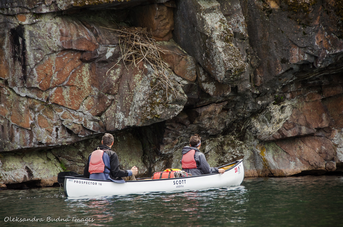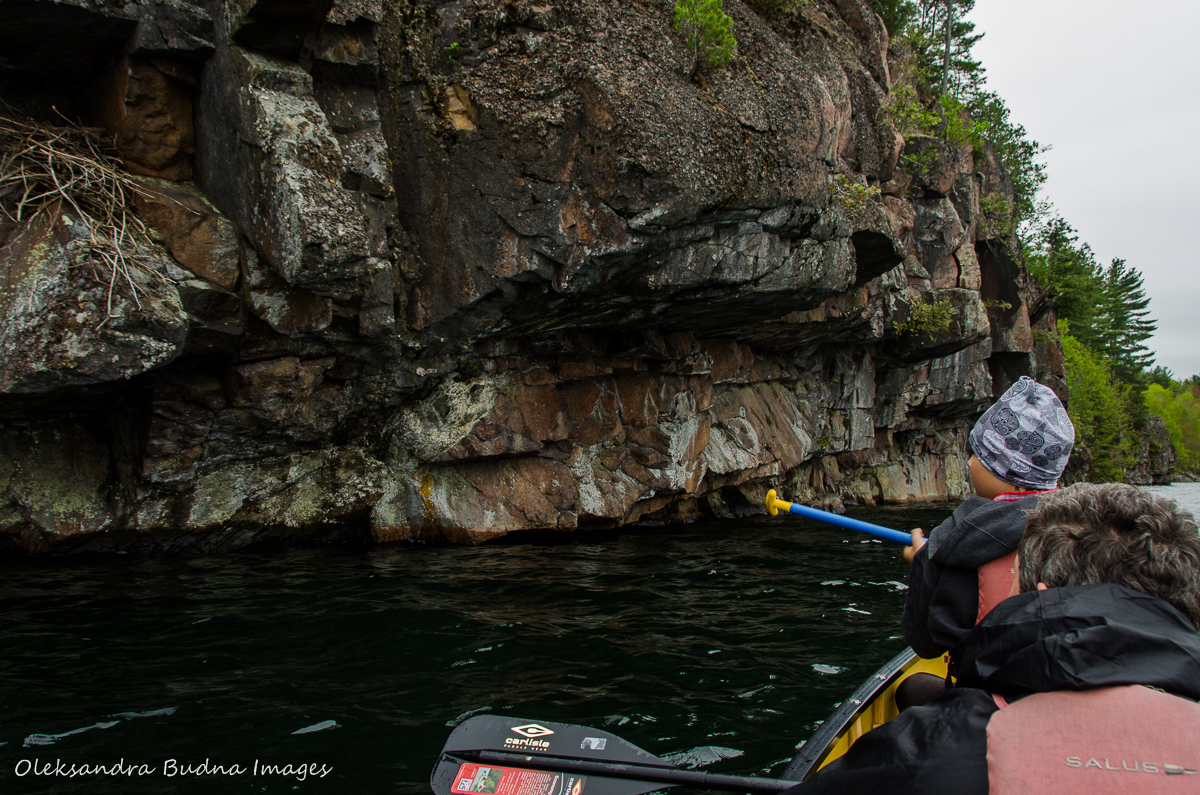 When we finally caught a break from all the wetness, we used it to go for a paddle around the lake. We explored the cliffs and a huge bird nest that we’d noticed the day before.