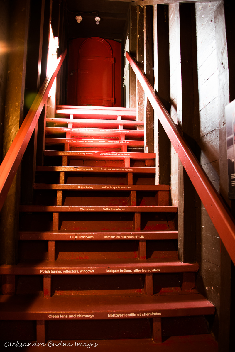Lightkeeper’s duties written on the stairs. Every day, the flags spell a different word in Newfoundlandese, or is it Newfoundlandish?