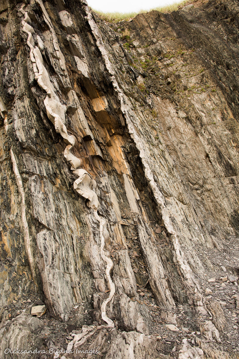 The ocean starts its slow return so we hurry to the Green Point to explore it at low tide. Green Point is described as an important geological benchmark because of the fossils found here, which define the boundary between the Cambrian and Ordovician periods. But it’s not until we get there that we truly appreciate what it means. Layers upon slanted layers of rock, each one is different shade and composition. Razor-thin dark plates, chunks of clay with deep impressions left by boulders that used to be trapped inside, blocks of pebbles sandwiched in between. Seeing 500 million years of Earth history on display really puts your life in perspective.