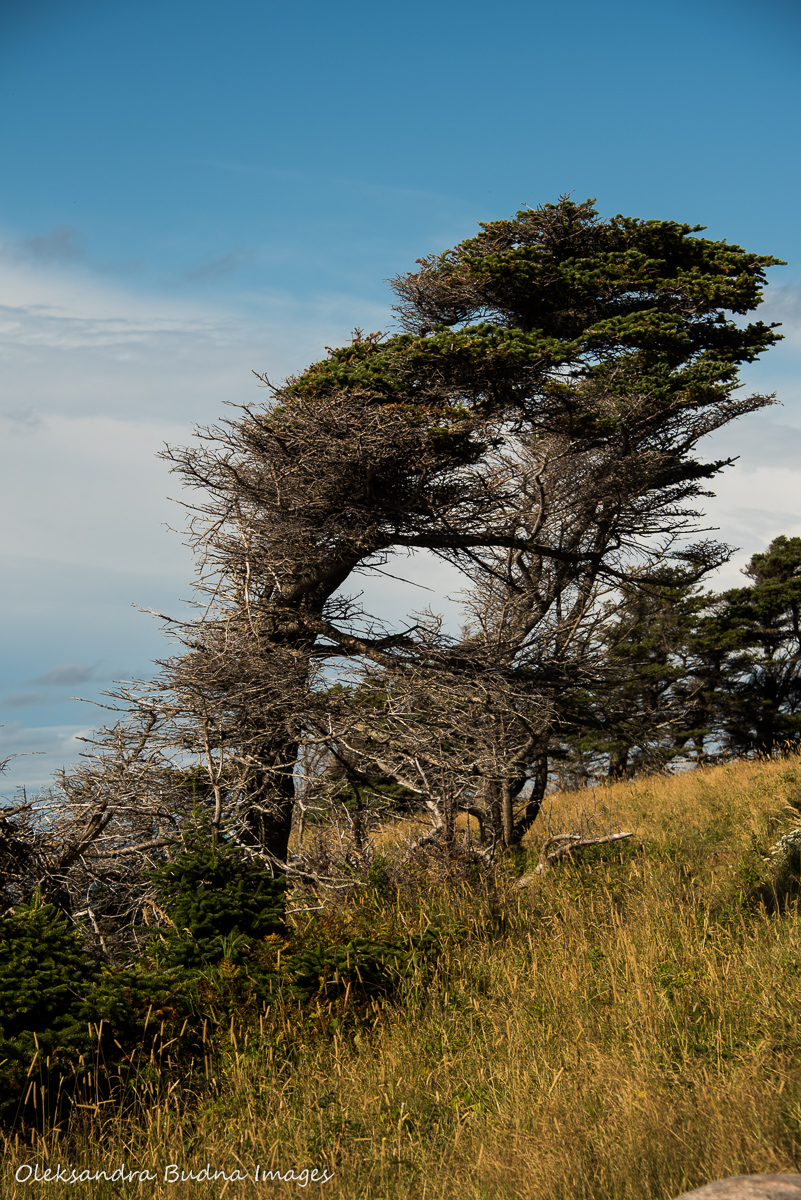 Famous Newfoundland tuckamores, dwarfed and gnarled fir trees tristed into whimsical shapes by harsh growing conditions