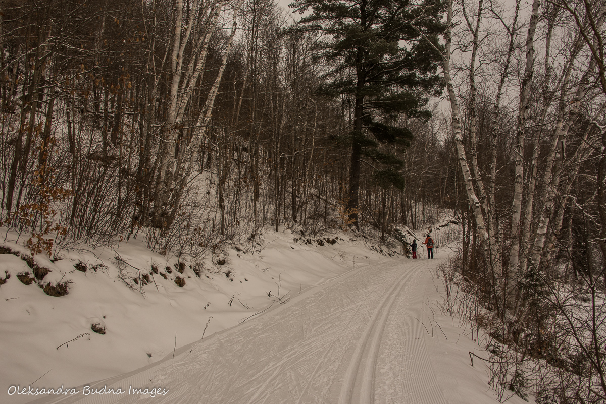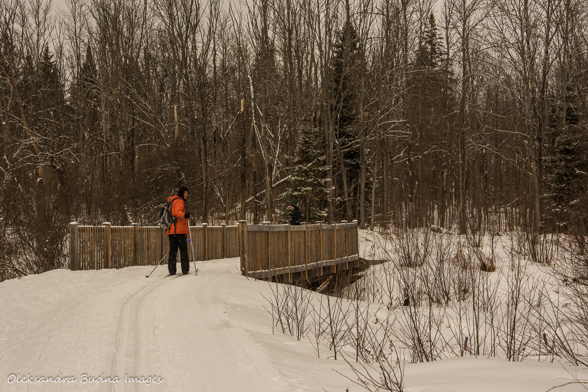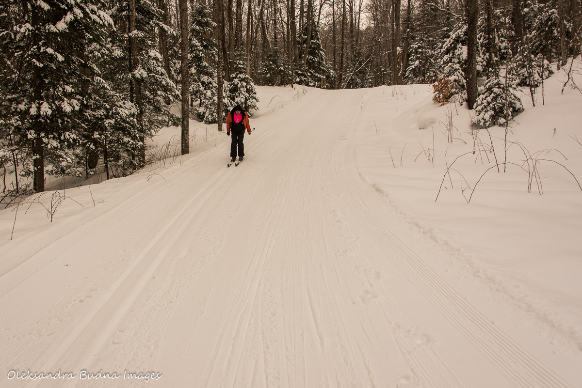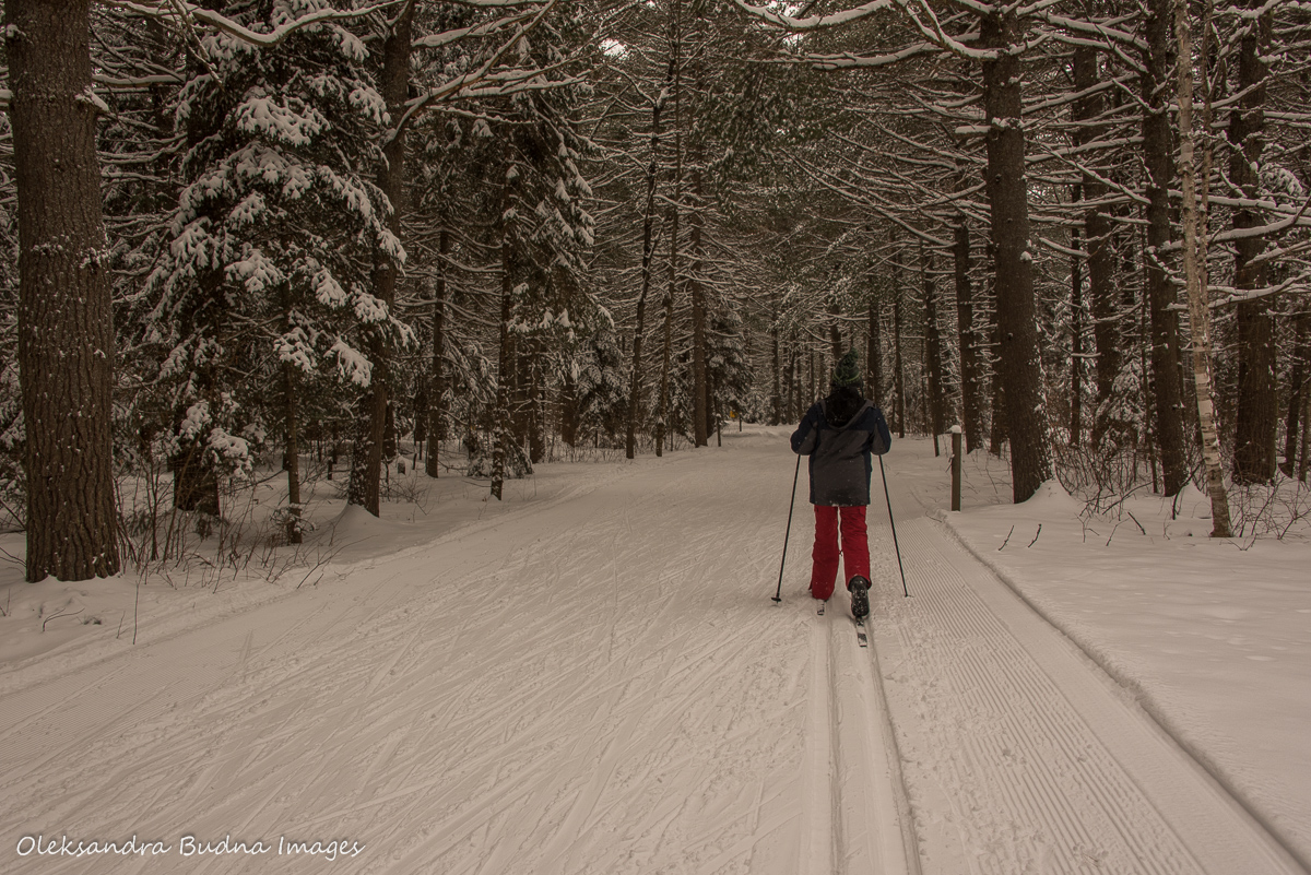 Two trips to the same park only three weeks apart may seem repetitive. Arrowhead, however, is a park with endless possibilities so getting bored wasn’t an option. After a few days of snow, almost all the trails were open so we could finally do some cross-country skiing. Did I mention how much I love skiing? I am not even that good at it but there is something magical about gliding through a snow-covered forest. I couldn’t help feeling like we entered a fairy-tale, glided our way right into a postcard depicting a typical winter forest scene. Snow balancing on thin tree branches and broad furry paws of pines and spruces.  A deep forest slumber interrupted only by screeching squirrels and chattering blue jays.