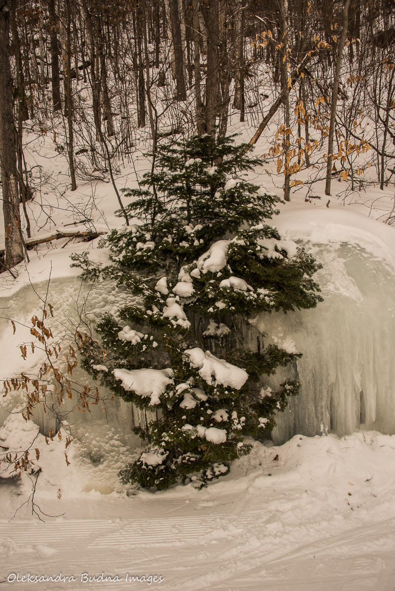 fir tree frozen in ice at Arrowhead Provincial Park   three trees in Arrowhead Provincial Park in the winter