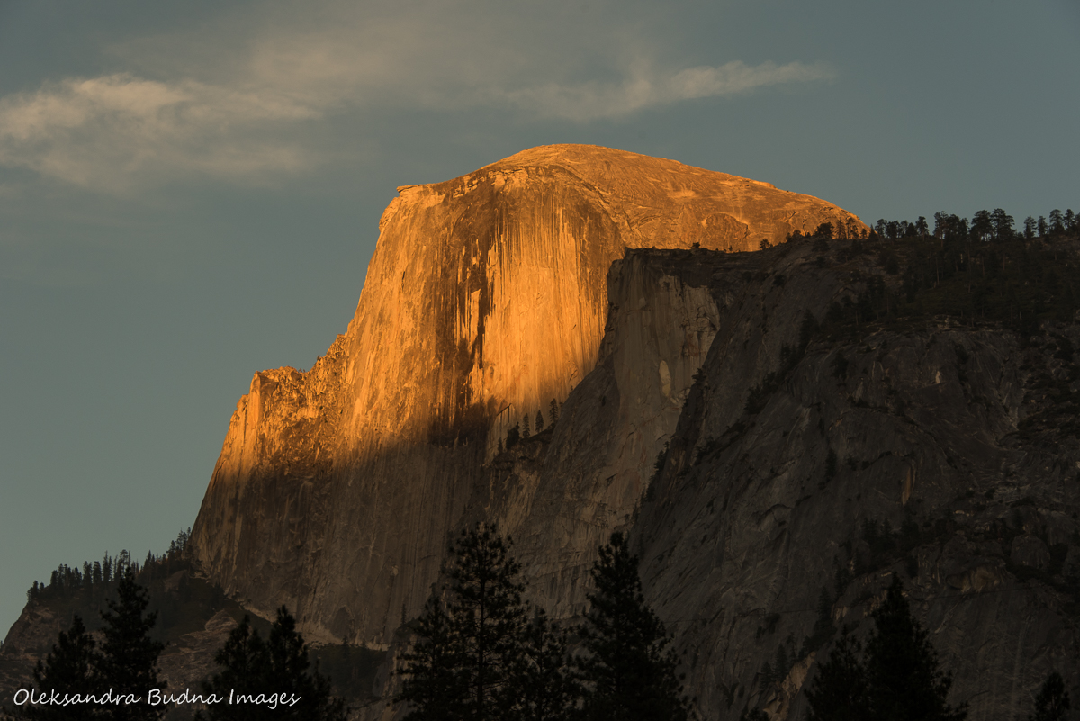 The legend of the Yosemite Miwok tells about Tis-se’-yak and her husband, who travelled into the Valley of Ah-wah’-nee from a far-away country. By the time they got there, Tis-se’-yak was so thirsty she drained the whole lake. Her husband got upset, a fight ensued, Tis-se’-yak threw a basket at him. And as they stood there glaring at each other, they were turned into stone: the wife became the Half Dome, her husband — the North Dome across from her, to this day facing each other, separated by a chasm. The women’s face is tear-streaked, and her discarded basket is still lying nearby known as the Basket Dome.