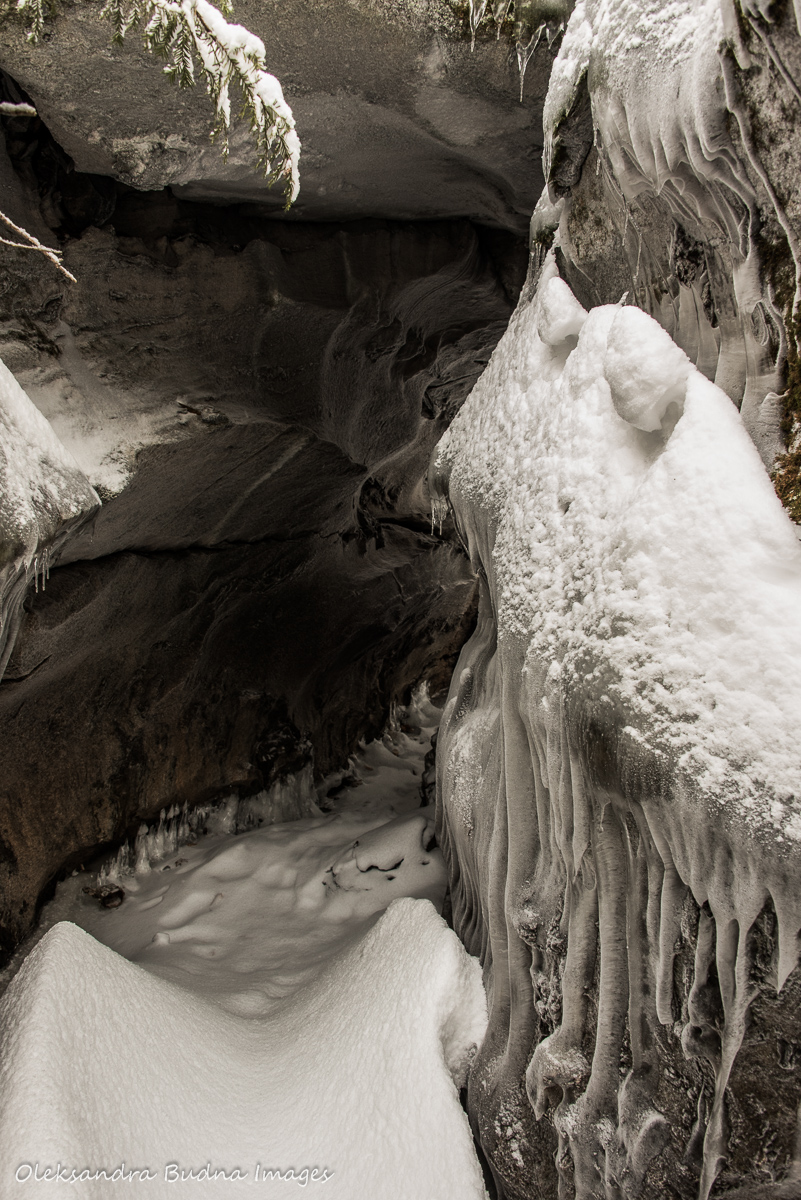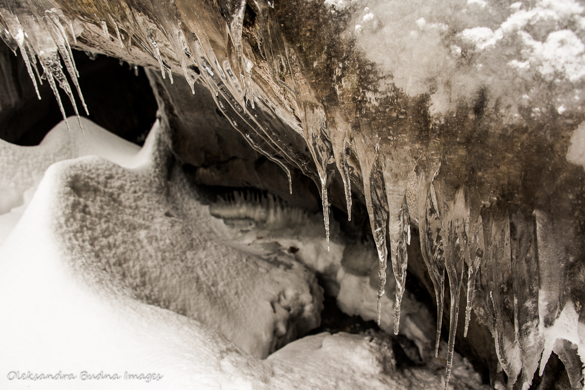 We did get to the cave but didn’t go deep inside to avoid disturbing the bats that often spend the winter here, just peeked in through one of the openings. Looked like water had been hard at work creating masterpieces that were now adorning the edges and hanging around the openings.
