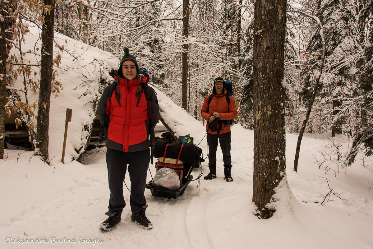 The Hobbit House was the farthest: about 900 metres from the parking lot. You can get a sled near the registration but we brought our own.