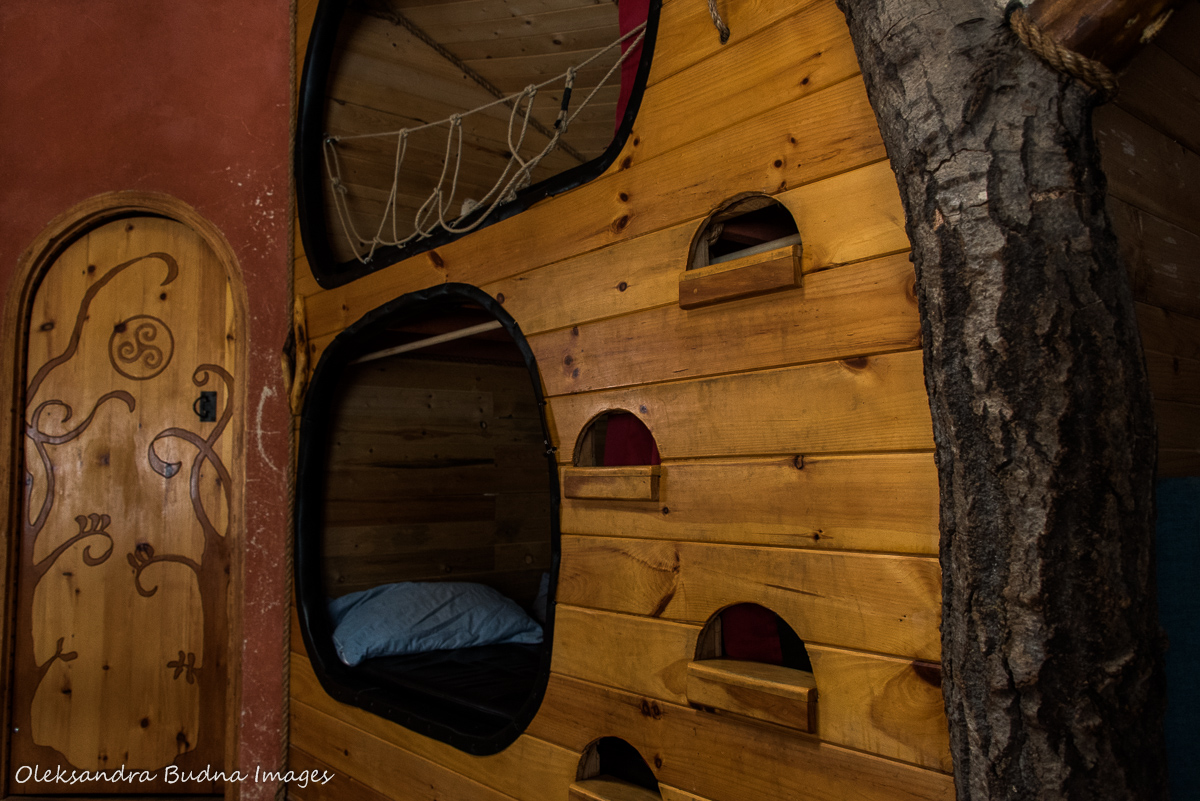 The cabin isn’t just an opportunity to become a hobbit for a few days. It’s also ecofriendly. The furniture is built of local wood, the roof is made of sod, and straw is used for insulation in extra thick walls. That last feature kept the house warm and cozy without us having to use much wood. Our past experience with a wood stove was waking up several times a night to feed the fire. This time we just added a couple of logs before going to bed and could sleep comfortably till morning.