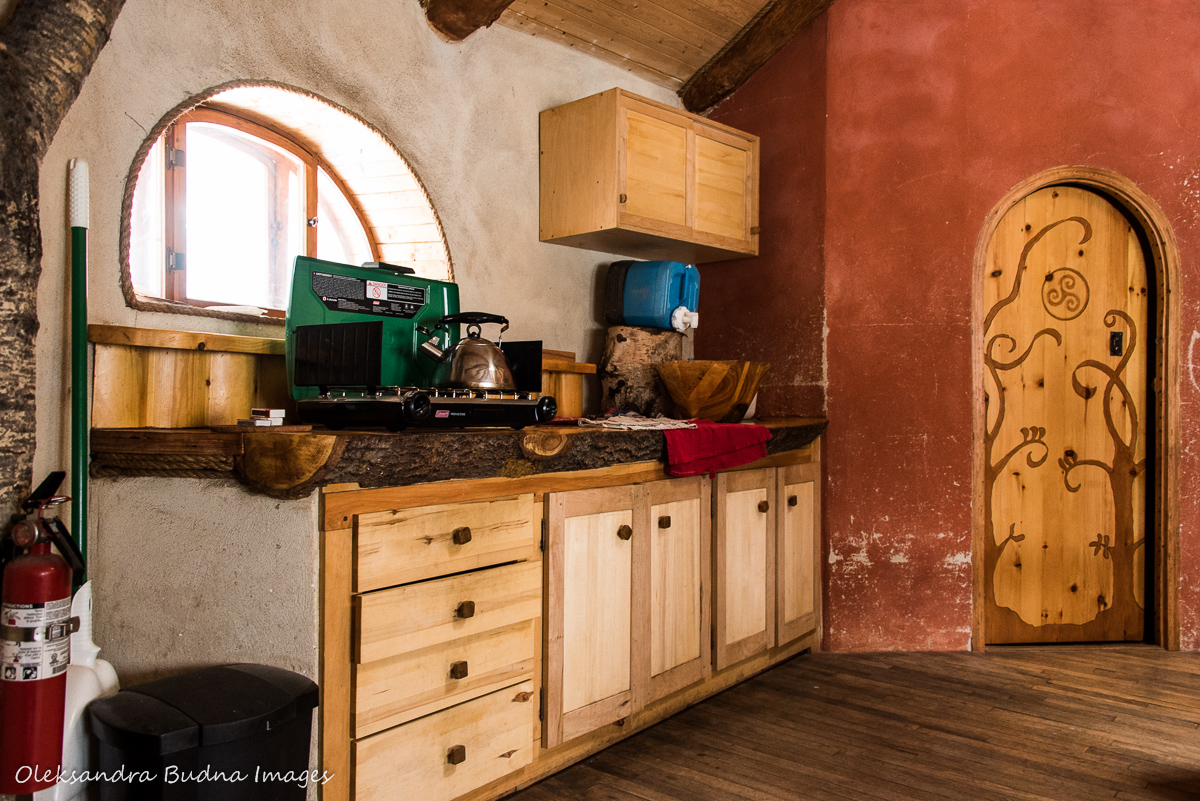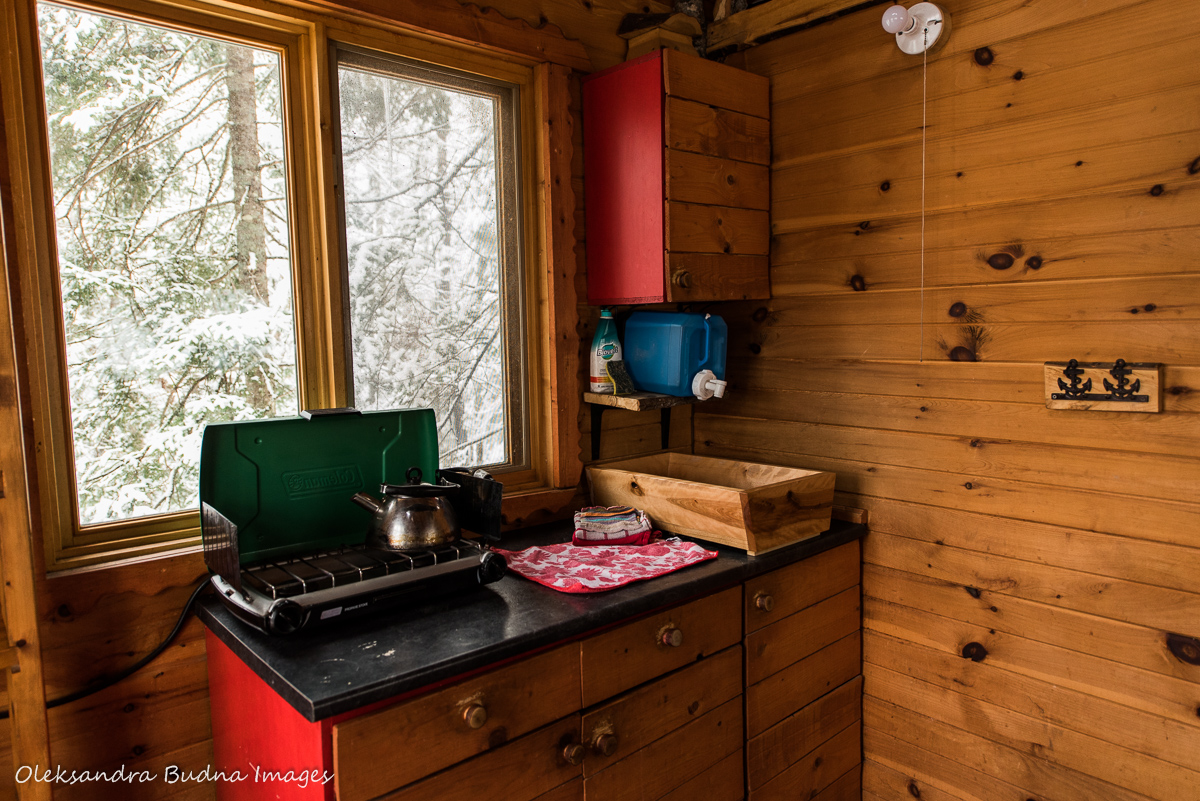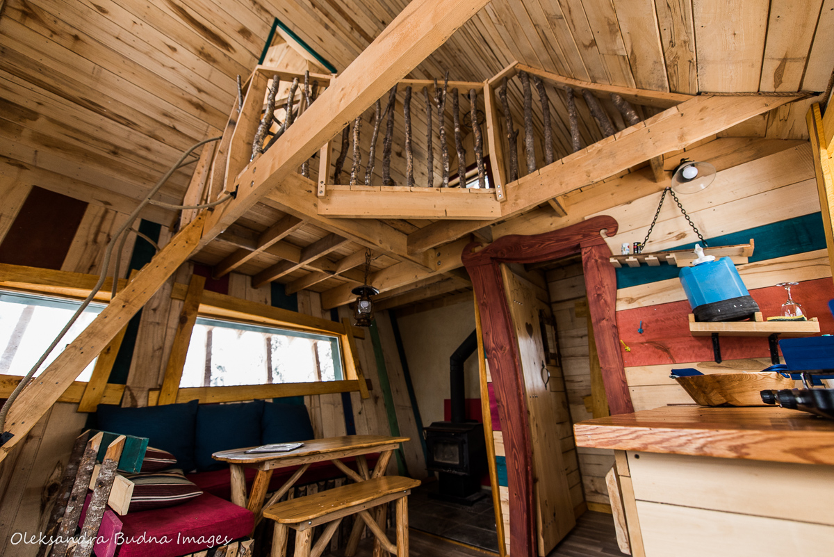 The Perched Chalet is smaller but has the same amenities as the Hobbit House and the Enchanted Chalet: a propane stove, a sink and a washroom. The sleeping quarters are upstairs but don’t worry, no pole jumping or climbing skills are required: there is a ladder to get up there.