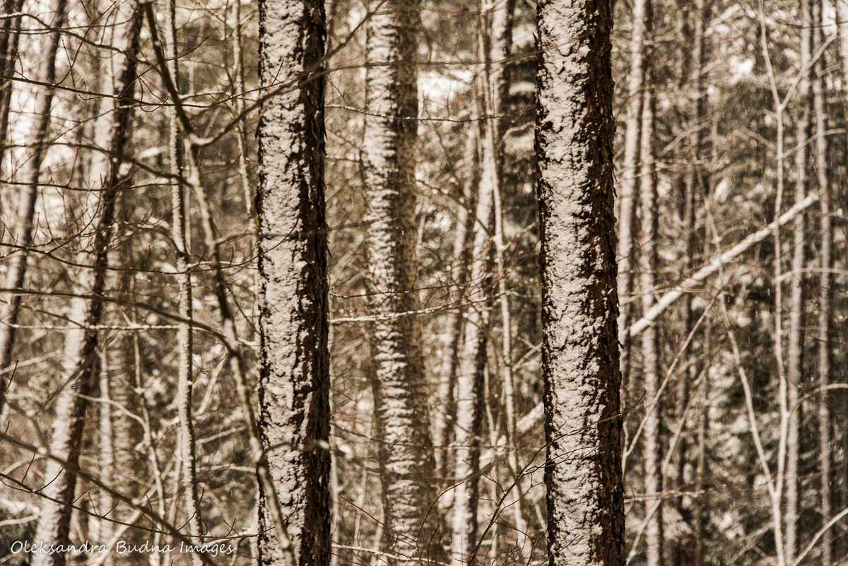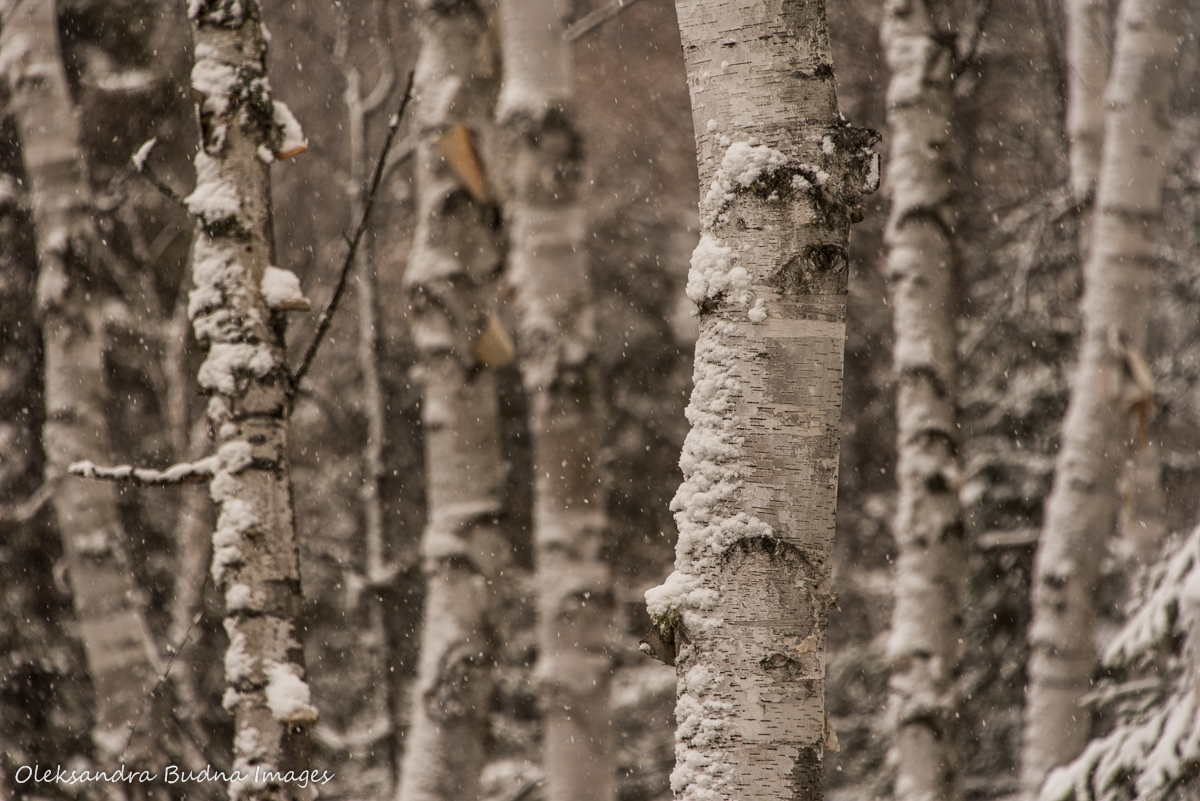 The Transition Trail conveniently started right near our yurt and that’s where we began our day, after coffee and good breakfast, of course. It wasn’t our first time on the trail but the forest always changes if you pay attention. This time, it was all brown and white stripes, with occasional green peaking through.