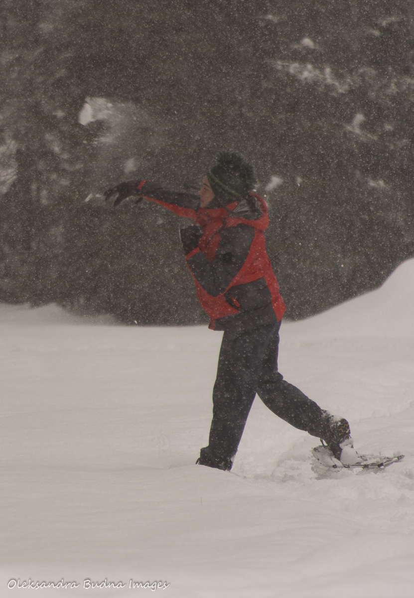 On Saturday, we woke up to more snow coming down. Our plans for the weekend were simple: walking slowly and breathing deeply. We always enjoy skiing at Windy Lake. This time, however, our older son came along, which doesn’t happen that often anymore. And since he is not a big fan of skiing, we decided to accommodate his wishes and stick to snowshoeing.