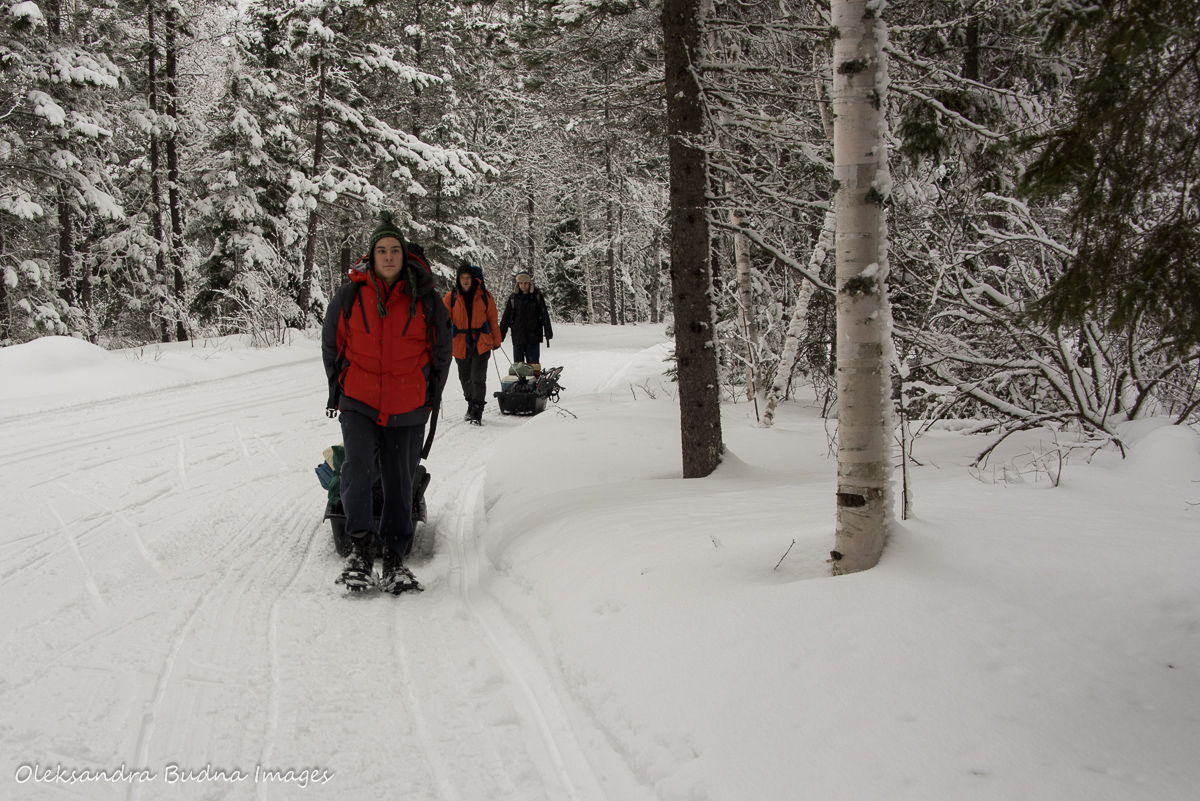 Our blissful morning was interrupted by the arrival of park staff who came to clean the yurt for the next visitors. So we quickly threw everything into the sleds and headed to the parking lot.