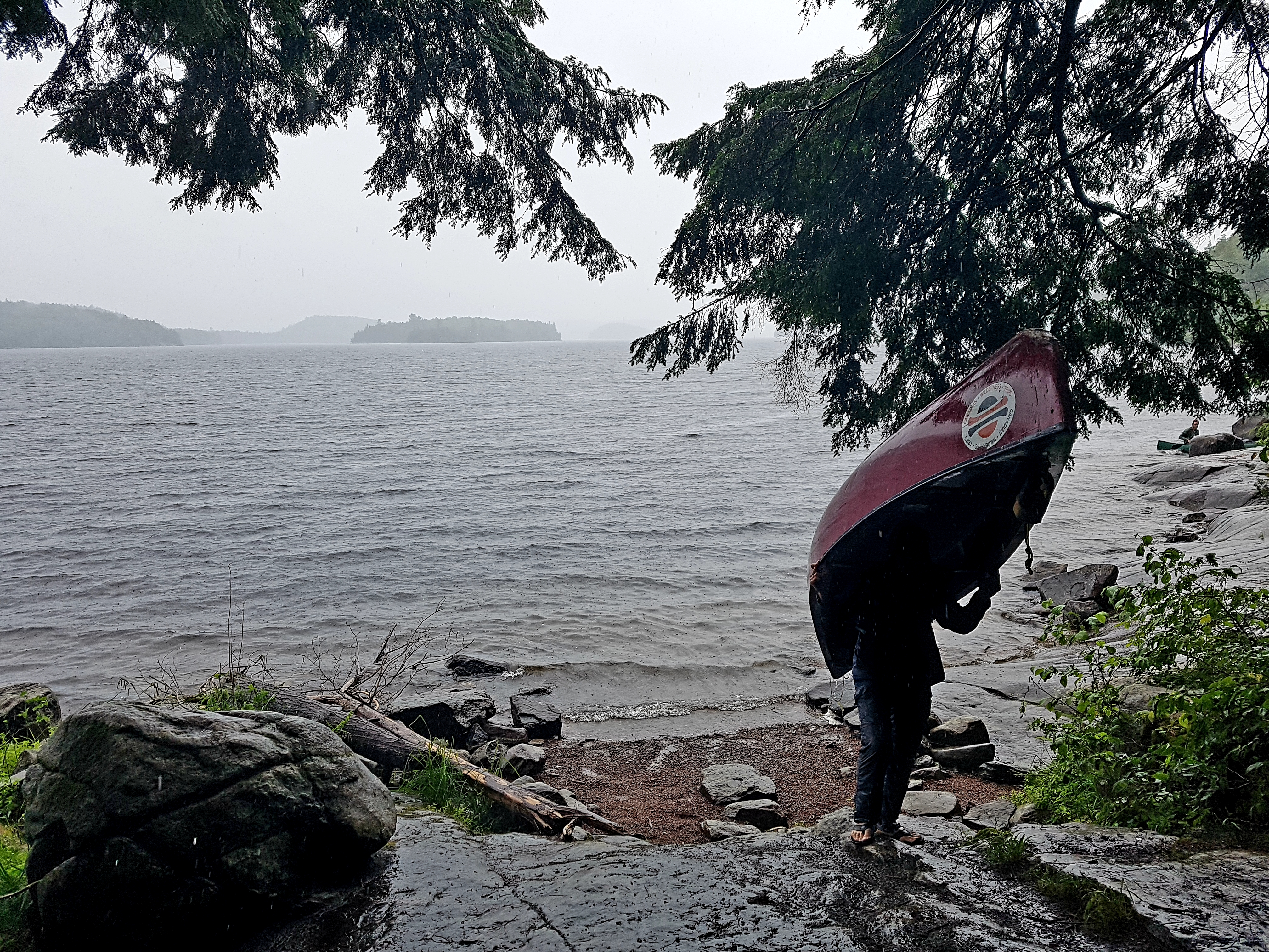 By day four, camping gods decided we had too easy of a time and sent wet weather our way to add some Type B fun to our trip. That was also the day when we had to move to North Tea Lake. Packing in the rain wasn’t much fun. Paddling into the rain and wind even less so.