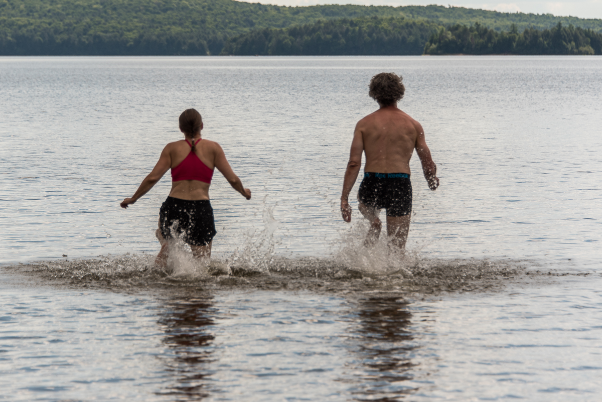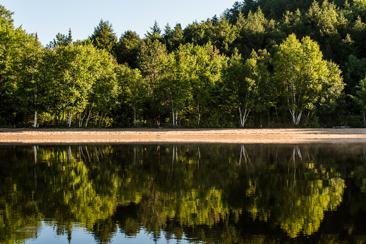 Our third day in the park brought beautiful weather and perfectly smooth waters. Looked like a great day to paddle all the way across the lake to another portage, this one connecting Manitou to Amable du Fond River. It ends in a beautiful wide beach so no surprise that most canoeist are tempted to jump into the lake after a kilometre-plus portage. We couldn’t resist the temptation either even though we didn’t do the portage.