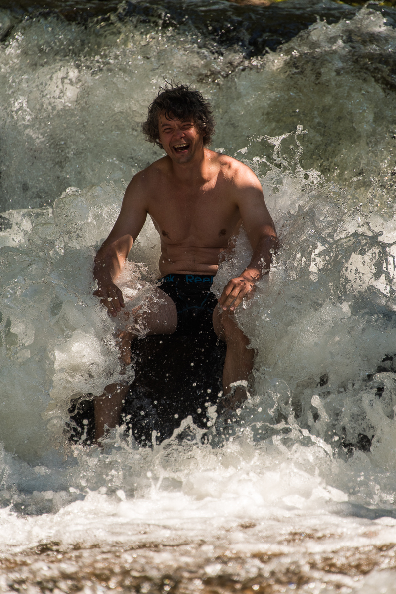 The rest of the time was spent exploring the lake. One of our day trips took us to the falls between Manitou and North Tea Lakes. According to Kieran at Driftwood Paddle, they were a must visit and we could see why. The falls were a beautiful display of playful water, a joy to watch and fun to splash in. Who needs a jacuzzi when you can get your back massaged by a rushing stream?