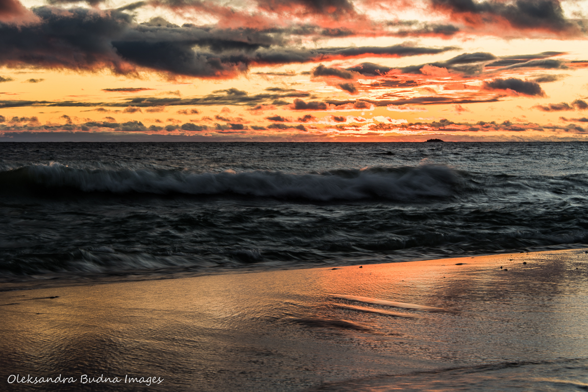 With Lake Superior as her canvas, Mother Nature taps into her most spectacular fiery sunset palette.