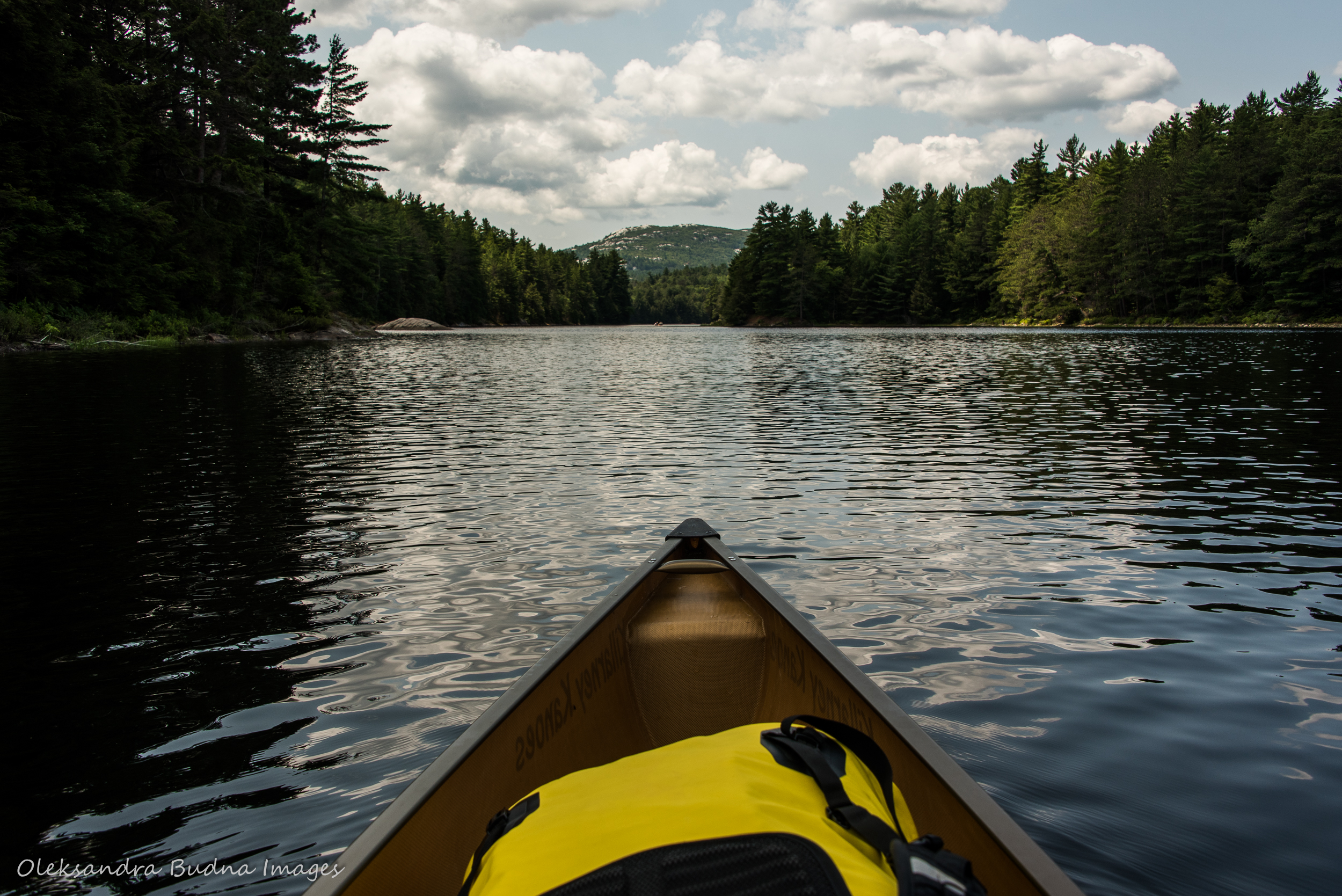 Half an hour later, my canoe cuts through the stretched-out canvas of the lake and I slowly lower my paddle into the water pushing through the clouds drifting underneath. These morning paddles rarely have a destination. Half the time, I just sit quietly in my canoe in the middle of the lake reluctant to disturb the calm that heralds the birth of a new day. I sit and wait for the world come to me, shower me with its beauty, flood my senses with the calls of the loons – their otherworldly songs gliding across the smooth surface of the lake and bouncing between hills. And if I sit long enough, my breath eventually matches that of the lake, of the forest and the hills that are now waking up and shaking remnants of their slumber into the water.