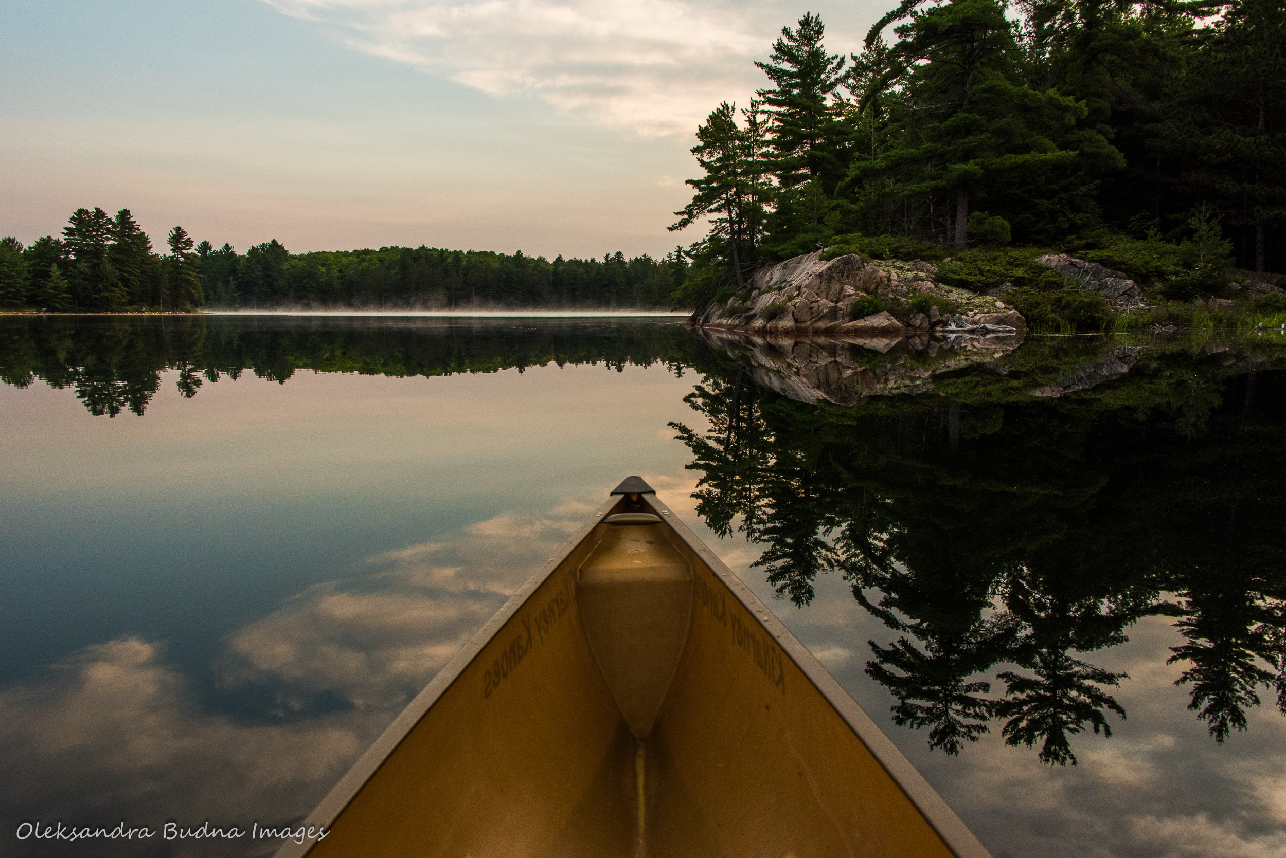 These early hours in the middle of the lake, amidst yawning hills and ethereal loon songs, when sunrise fiery hues give way to hazy blues – that’s when I feel so intensely present while slowly disappearing in the world’s embrace and the line between now and eternity is gradually erased.