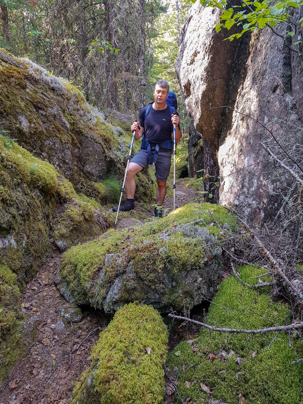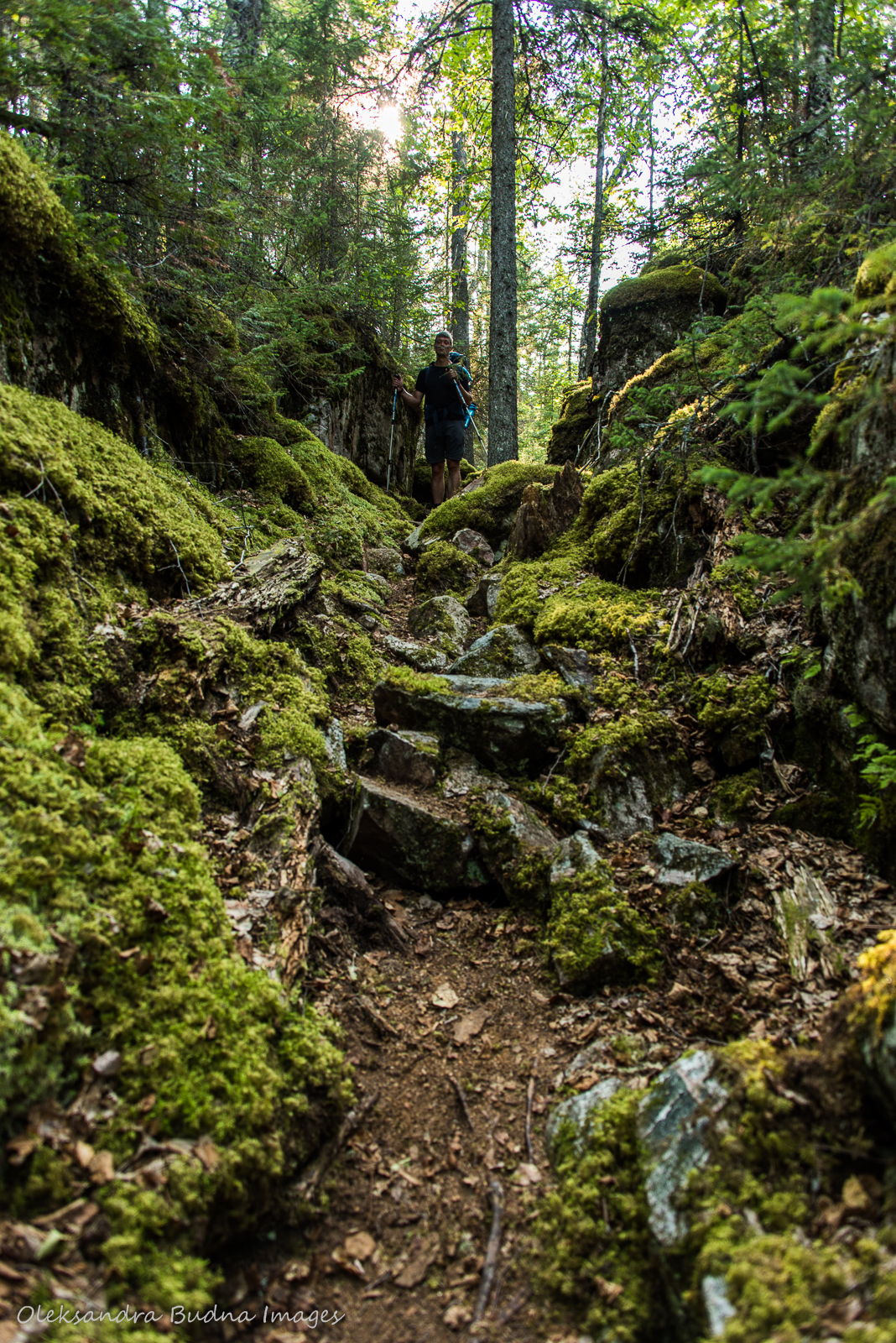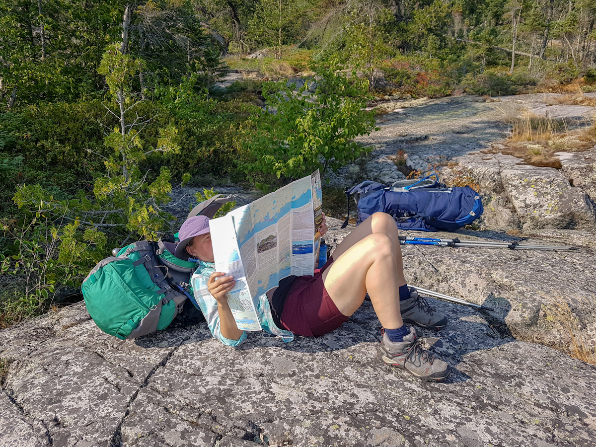 I should probably mention that we are more of a canoe people. For the most part, we prefer paddles to hiking shoes but we’ve done a few backpacking trips in the past. Last year, together with our kids, we hiked Mdaabii Miikna (‘go to the shore trail’ in Anishinaabemowin) here in the park, and that’s how the idea of backpacking the Coastal Hiking Trail was born. Although, according to my husband, the seed was planted much earlier. Apparently, I talked about it during our very first camping trip to Pukaskwa. Back then he thought dragging our stuff for 60 kilometres was a ludicrous idea. Yet here he is, ten years later, sitting on a rock next to me near the registration kiosk, nodding earnestly as the ranger goes through trail specifics, park rules, bear safety and other things that will help us get out of this adventure alive and unharmed.
