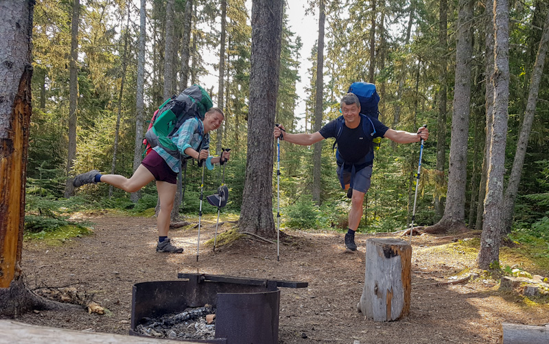 This was our longest trek with backpacks. Initially, we were planning to stop at Morrison Harbour (Miziinack onigiigan) but then during booking switched to Fish Harbour. That added another three kilometres to our hike. Once we reached our destination, we knew we’d made the right decision: Fish Harbour is a much nicer spot. In fact, the planning guide describes it as a painting right out of an art gallery.