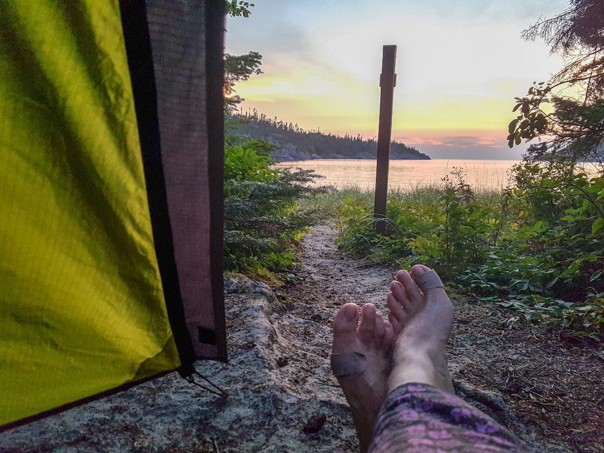 We meet people along the way: groups of friends, couples, extended families, a mother-daughter duo, a woman travelling alone with her two dogs, even a solo kayaker making his way from Silver Islet near Thunder Bay all the way to Sault Ste. Marie. We stop to exchange stories and tips, our conversations peppered with “Which site are you coming from?” and “How far are you travelling tonight?”, talks of blisters and best hiking socks, previous hiking experiences and future travel plans. After these conversations, I realize that everyone is hiking their own trail, even if we are all walking along the same path. Not only because we have different starting points, different itineraries, different distance covered each day, but also because we are all driven by our own reasons to don hiking shoes, hitch a backpack on our shoulders and walk for days in a row.