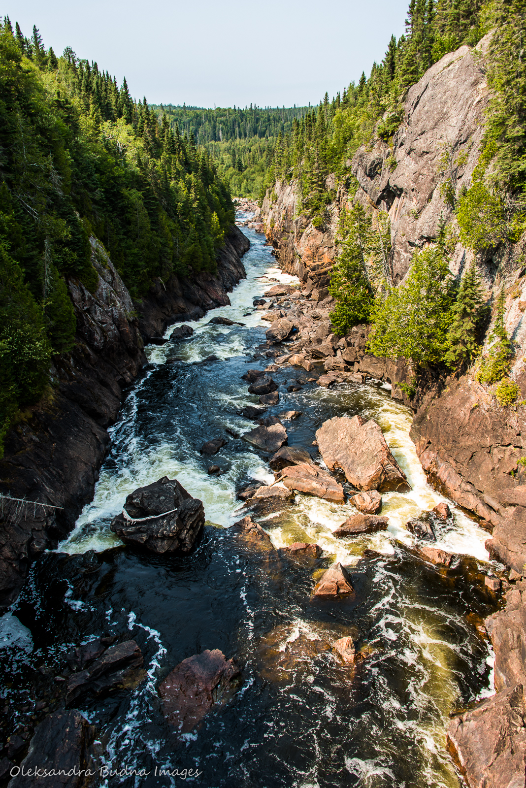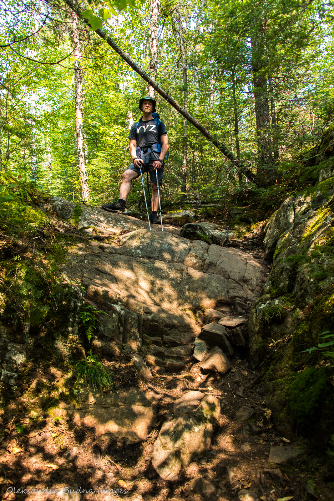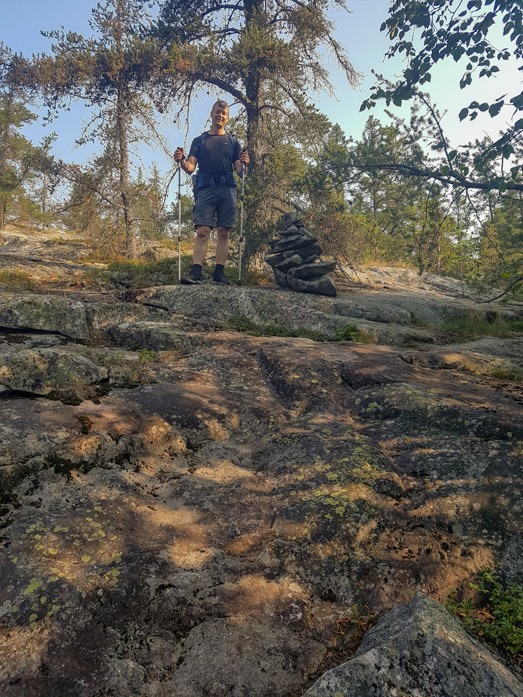 This part of the trail is fairly easy. Plus, it was already familiar to us, or at least most of it, since we hiked to Chigaamiwinigum Falls last year. So propelled by our excitement, still fresh and blister-free, we zipped through that part of the trek in one seamless fit. We marvelled at Chigaamiwinigum Falls: water revving through a 30-metre gorge is a truly impressive sight.