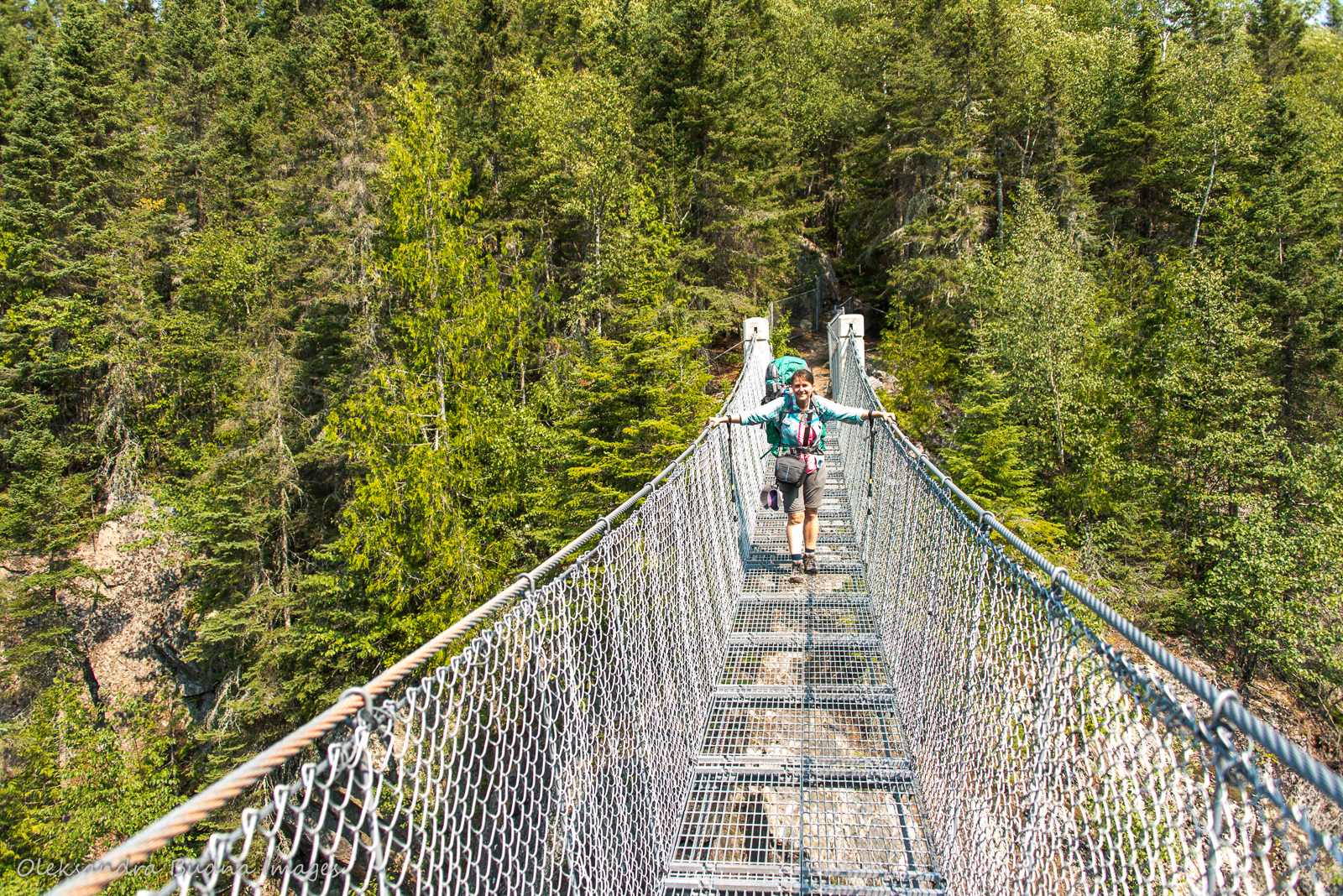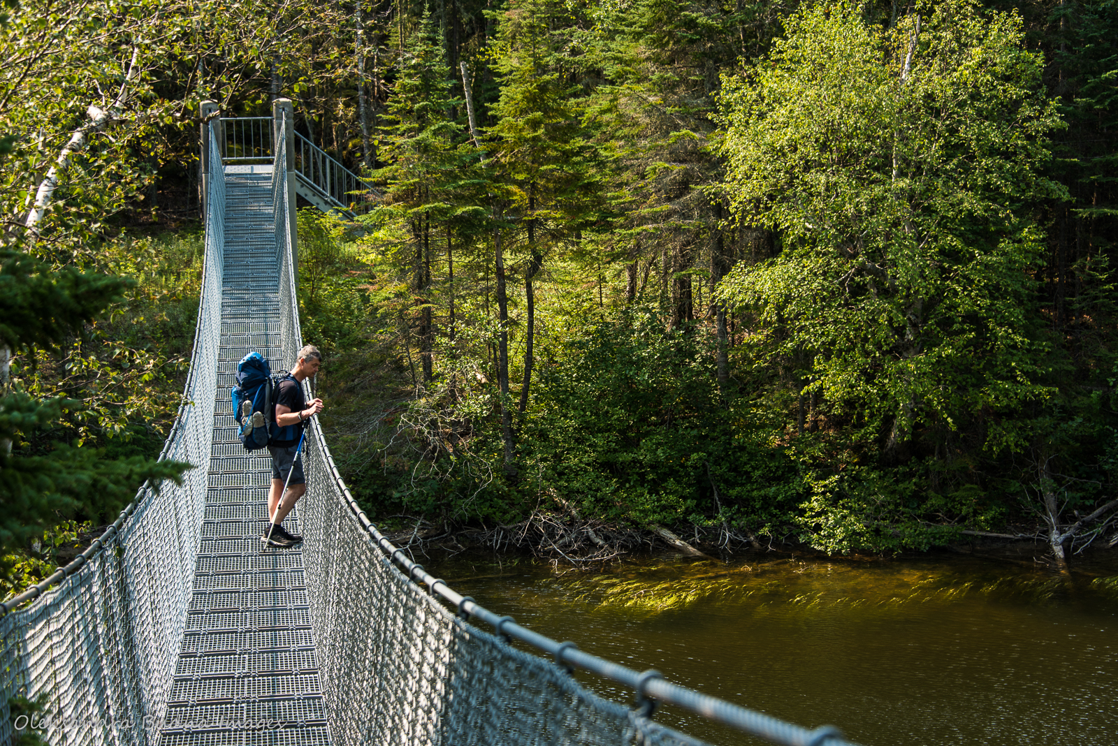 This 60-kilometre, mostly unmarked trail winds through boreal forest, over rushing rivers and meandering streams, across two suspension bridges, along endless sandy beaches, treacherous fields of cobblestones and rugged rocky landscapes.