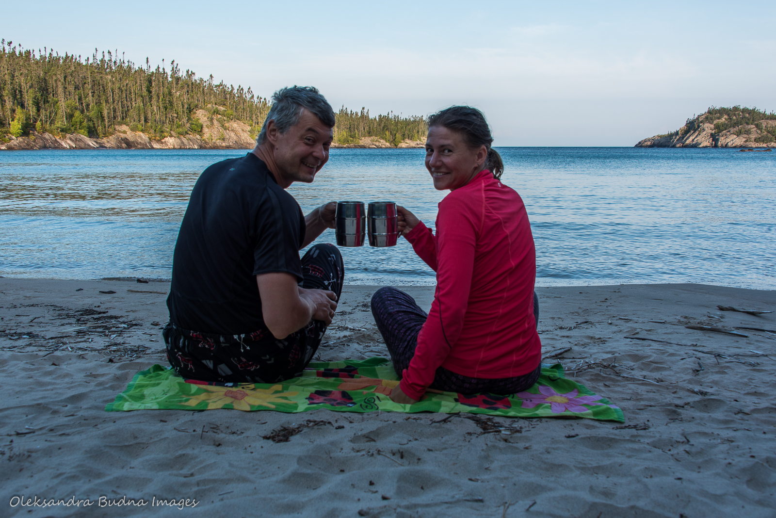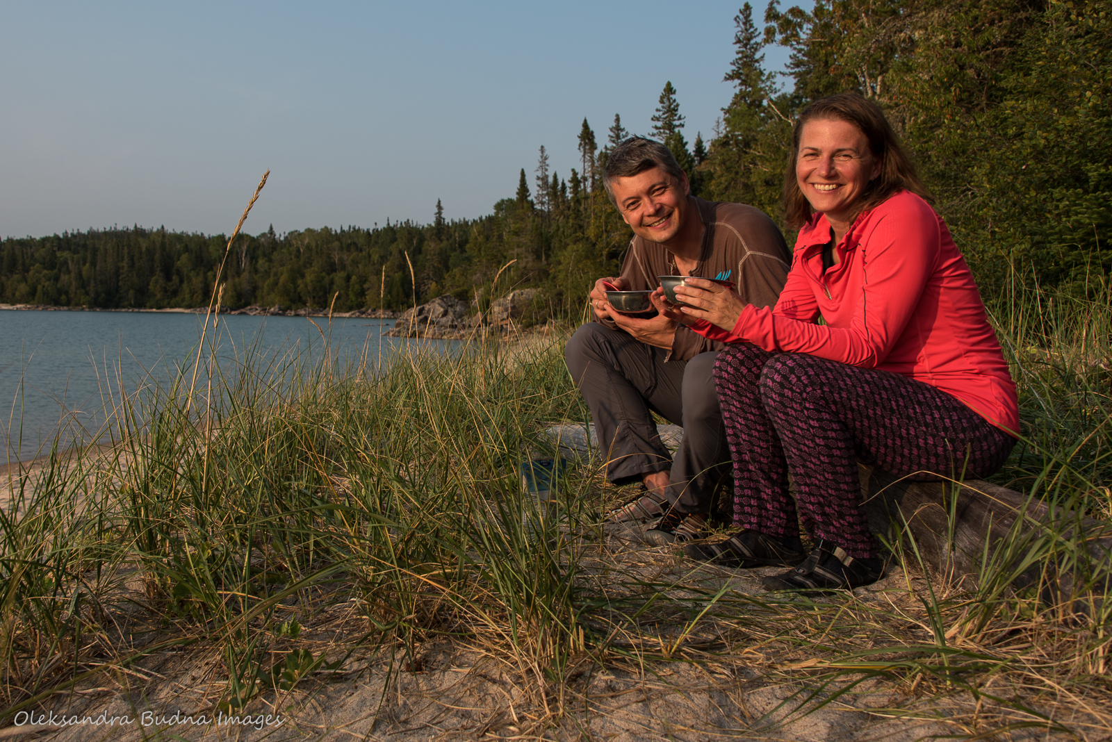 Willow River was a bit of a shock, even without this little drama. After days of seeing very few fellow hikers, we were surrounded by people in every direction. This location with four hiking sites, two paddling sites (all of them occupied), plus our eight new friends on the beach, felt more like a hotel and less like a backcountry campsite. And even though we were happy to see two groups we’d met earlier on the trail and who already felt like friends, I was looking forward to getting out of there and heading to our favourite campsite on Picture Rock Harbour.