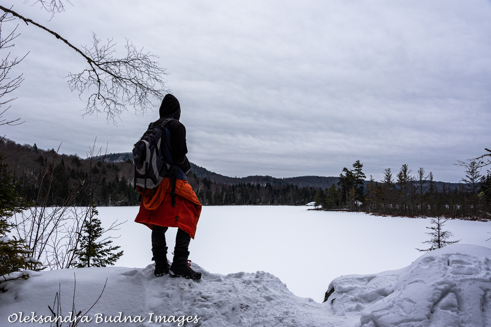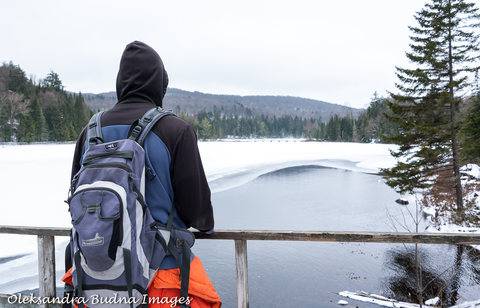 We hiked around the lake, along rocky shores, through snow covered woods and across wooden bridges.