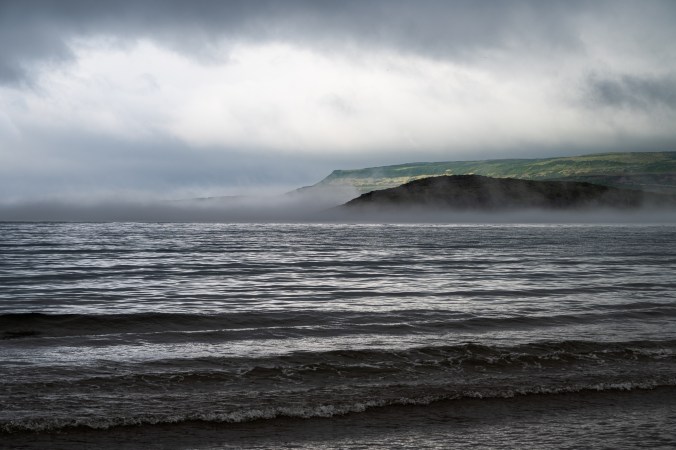 Just like the flies, the fog hangs around. On our first morning in the park, as we drink coffee on the beach desperately trying to ignore persistent attention of our new friends, we watch long, gauzy tendrils seep into the land and wrap themselves around dense trees and moss-covered rocks, filling the air with chill and moisture. It rises in columns from the sea until it’s no longer clear if the fog is born out of the water or the other way around.