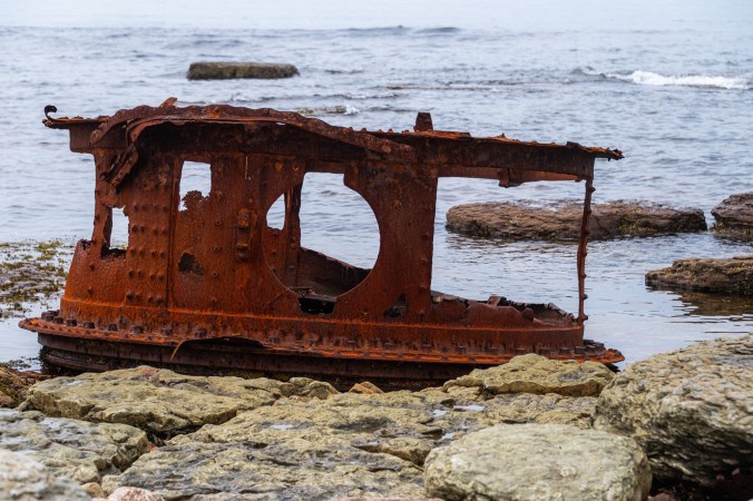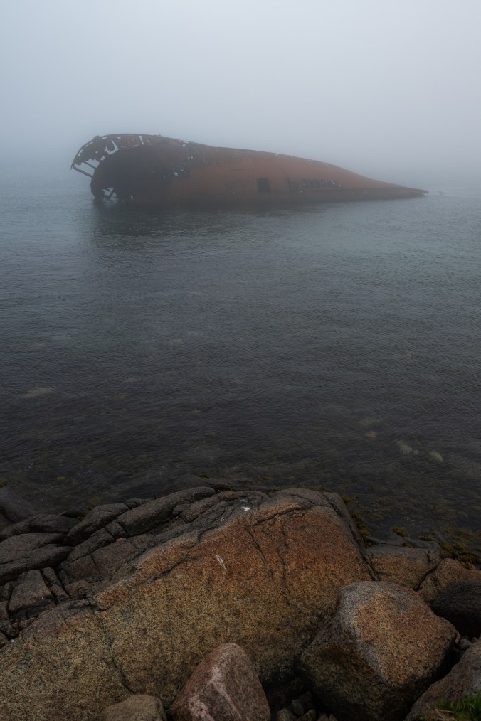 Saddle Island, a short boat ride away from the mainland, is where Basques set up their whale oil processing operations back in the 16th century. The wreck on the right is Bernier, which sank in 1966; resting under the water is a galleon loaded with eight hundred barrels of oil. Believed to be the San Juan ship toppled by storm in 1565, it was discovered in 1978; a small whaling boat – chalupa – was hidden under it. The chalupa and artifacts from the ship are now on display at Red Bay Visitor Centre.
